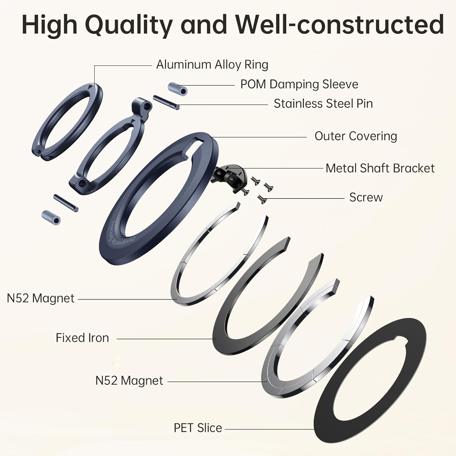 - [Compatible with All Cell Phones] The MagSafe ring holder is specifically designed to work with MagSafe devices and certified MagSafe phone cases. The magnetic phone ring grip is also compatible with non-magnetic phones and standard phone cases with a thin metal ring (provided). It is widely compatible with all Apple and Android smartphones, including iPhone 16/15/14/13/12 series, iPhone 11/11Pro/X/XS/XS Max/8/7, MagSafe Accessories, Samsung Galaxy, Google Pixel, and more.