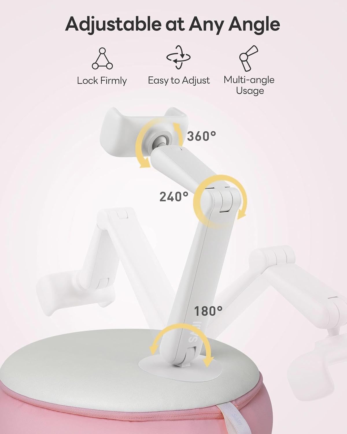 - Upgraded Double-jointed Arm Design: For a better product experience, SAIJI Phone stand for bed has upgraded the support arm to a dual-section arm and the clamp head to a universal ball joint that allows for free angle adjustment, making it more user-friendly and practical based on extensive feedback from long-time customers