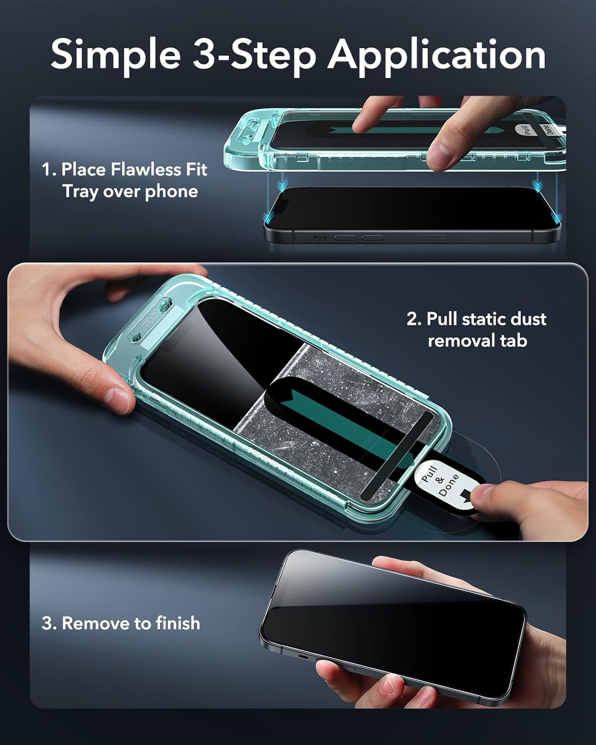 ESR 3 Pack for iPhone 16e/ iPhone 14/ iPhone 13/13 Pro Privacy Screen Protector, Anti-spy Tempered-Glass Privacy Screen Protector with Flawless Fit Tray