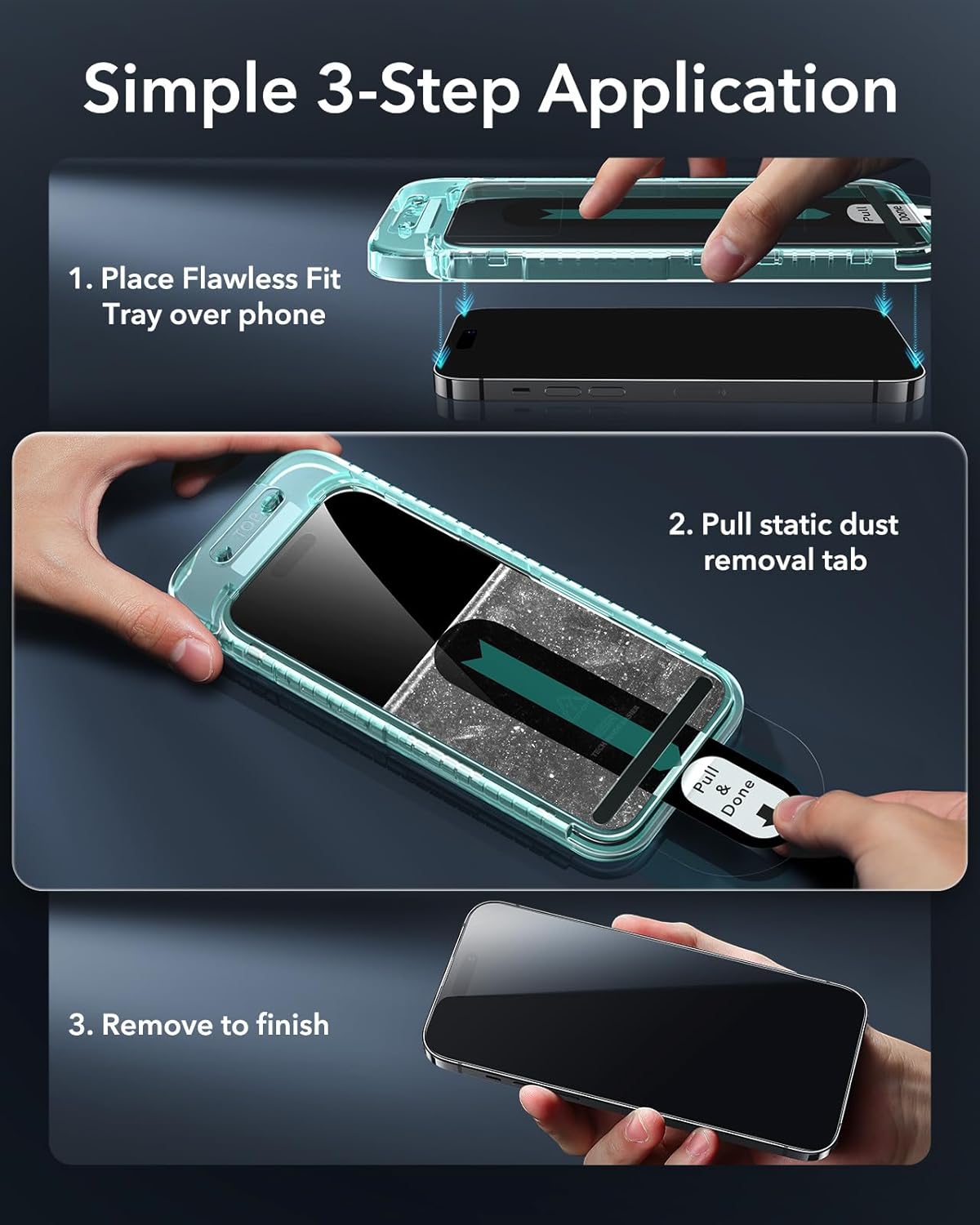 ESR 3 Pack for iPhone 14 Pro Max Privacy Screen Protector, Anti-spy Tempered-Glass Privacy Screen Protector with Flawless Fit Tray