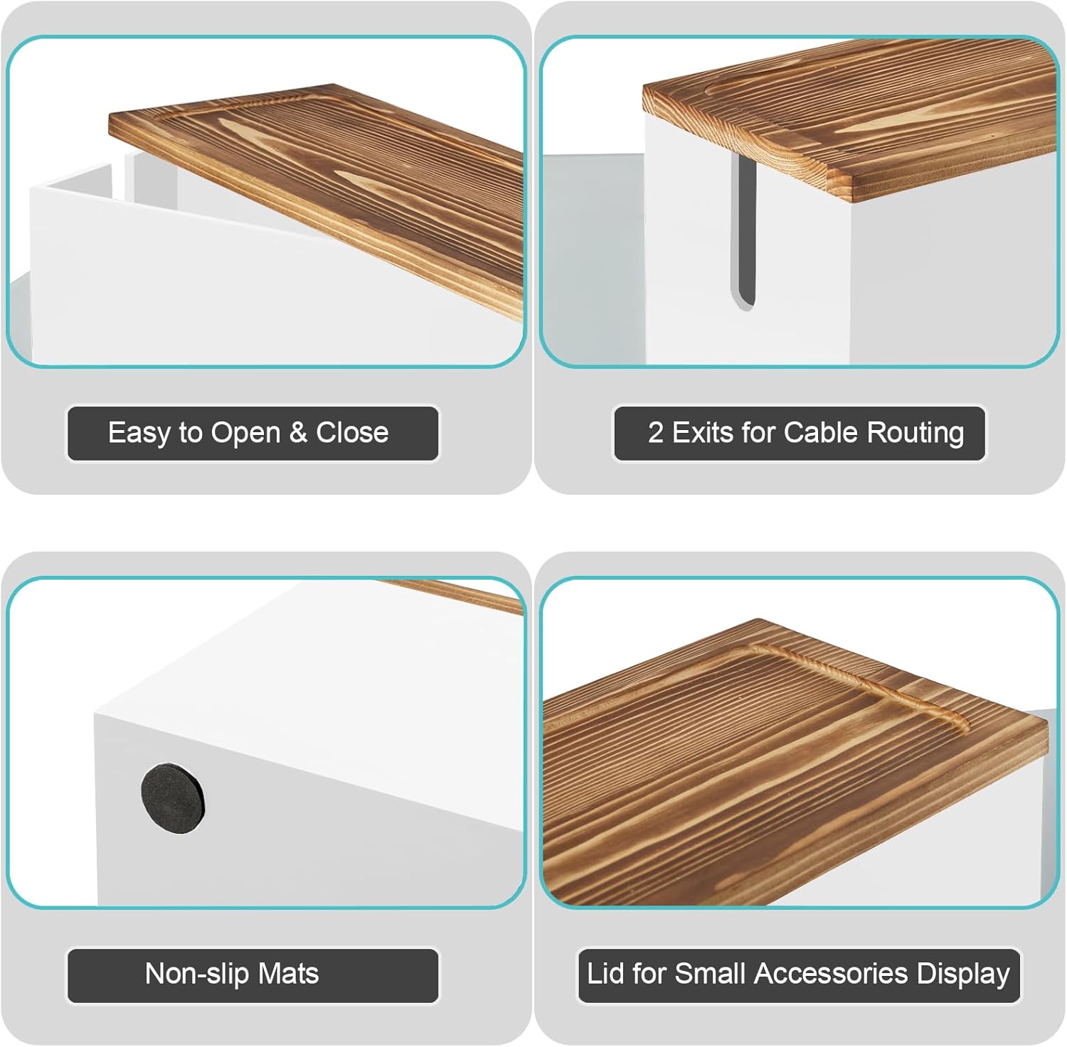 Bivvclaz Large Cable Management Box, Wooden Cord Organizer Box for Desk, Floor, Office to Hide Extension Cords Power Stripes Surge Protectors Chargers Wires, White