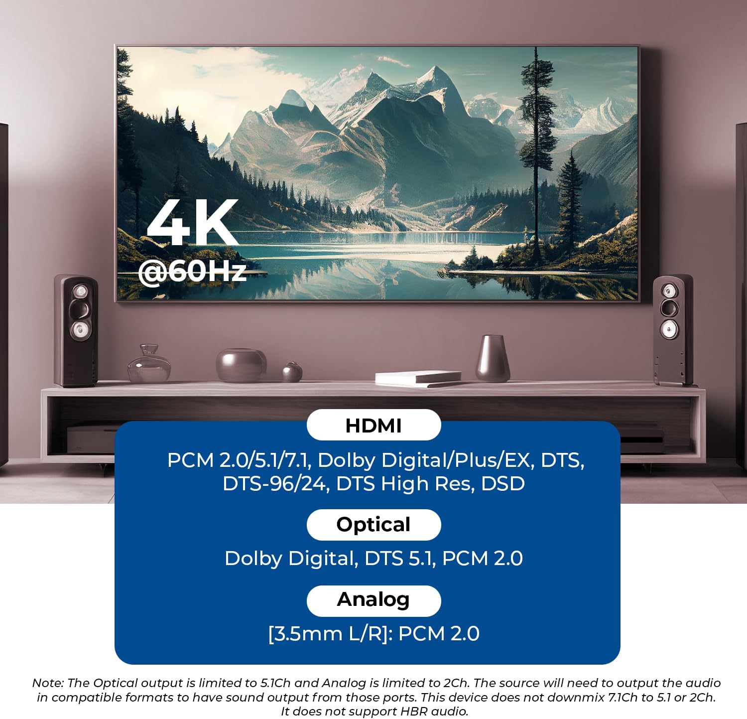 - Audio Extraction through Optical or L/R Analog Audio Out. Ideal Device for Multi Tasking on a Single Monitor, You can take control 4 devices such as PC, Computer, Laptop, Android Smart Phones, Streaming Box, PS4/PS5 gaming devices or 4K Blu Ray Players on a single Monitor. You can use a set of USB Keyboard and Mouse to control everything. You can switch with a remote control, front panel and RS-232.