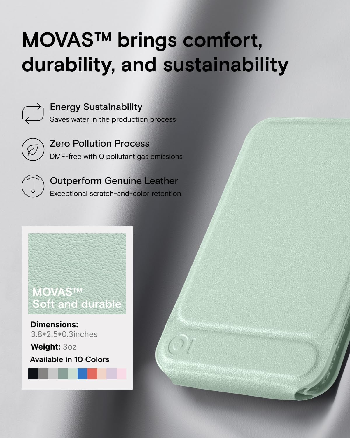 - Soft and durable - Made with MOVAS, the revolutionary vegan leather, that combines a silky touch and resistance to everyday dirt and scratches.