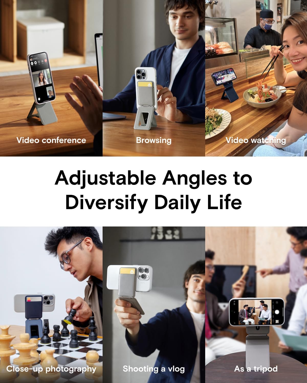 - 3-in-1 & Eco-friendly: This everyday carry features a phone tripod, phone stand and magsafe wallet with a simple fold to transform. It folds into an 8" phone tripod stand in a second. Crafted with the pioneering water-based MOVAS Vegan Leather, it's smooth to the touch while saving water from the manufacturing process.