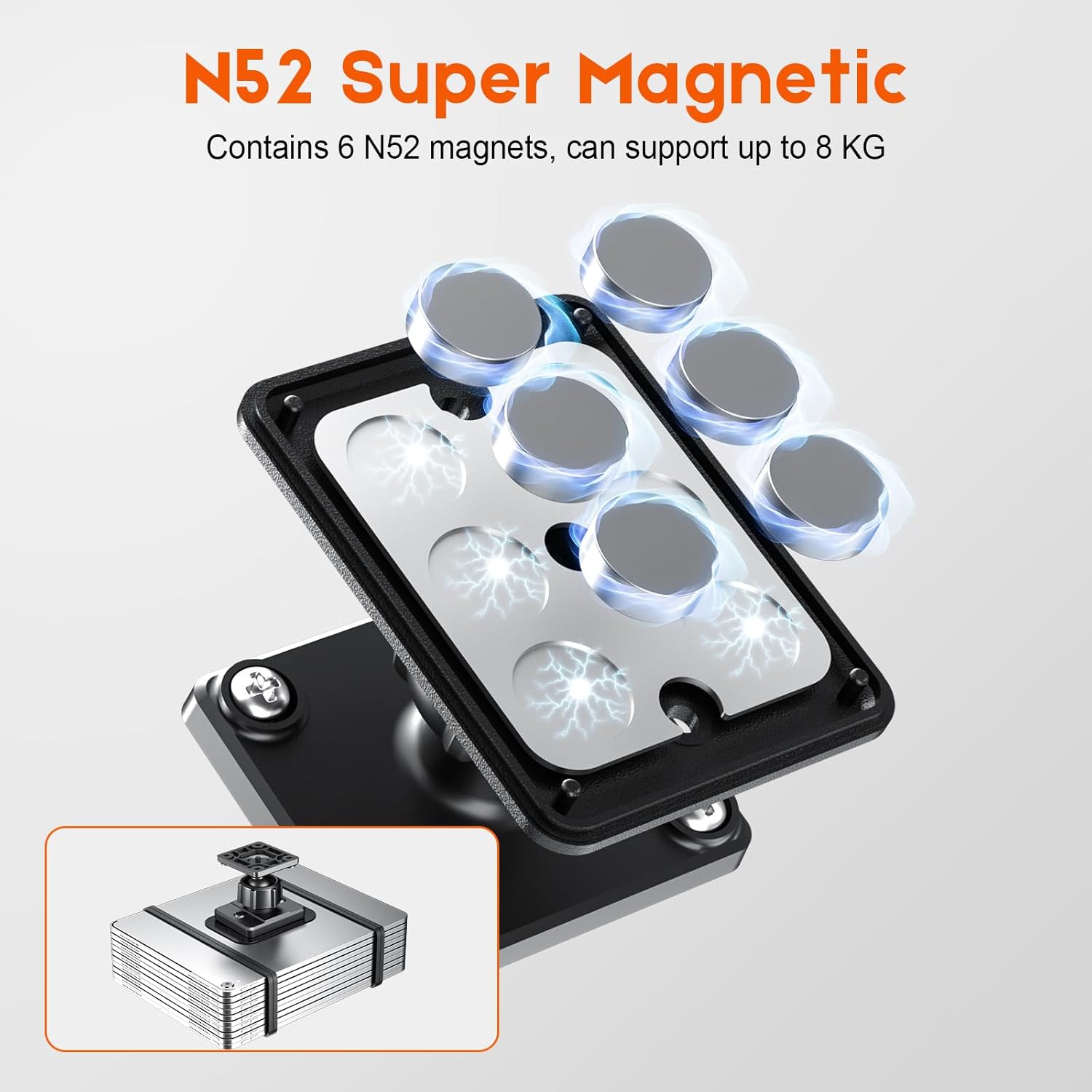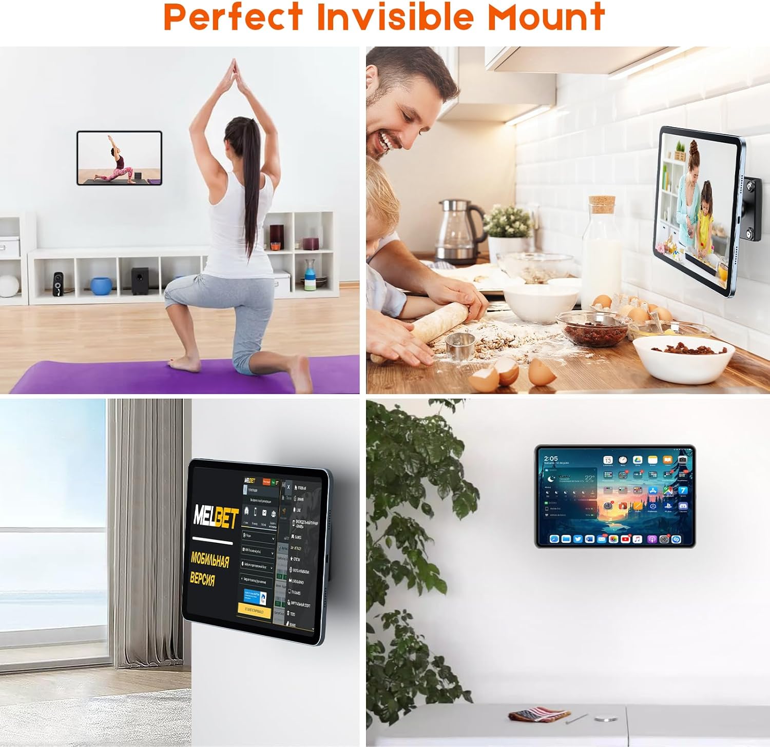 - [Superior Magnetic Hold & 360° Adjustment] Equipped with 6 N52 neodymium magnets, this magnetic tablet wall mount offers industry-leading holding power. Enjoy 360° swivel rotation and 30° multi-directional tilt adjustment for optimal viewing angles.