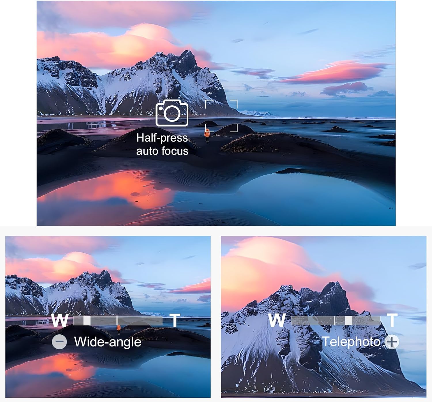 - Focus/Zoom: Set the distance and focal length between the camera and the subject through the buttons on the remote control to avoid vibrations caused by physical contact with the camera. Very suitable for long-distance shooting.