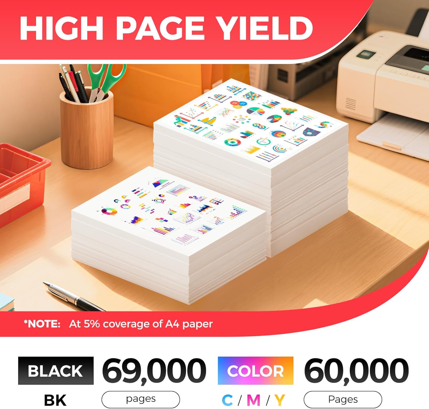 - High-Yield: up to 69,000 pages per GPR-55 Black and 60,000 pages per GPR-55 Color (Total 249,000 pages, A4 5% Coverage),with High Yield Version GPR55 GPR-55 toner Cartridges.