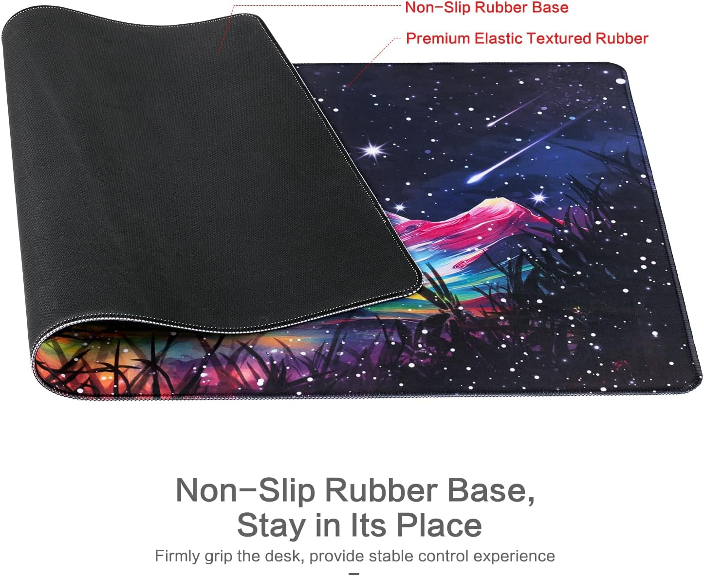 - Sturdy Non-Slip Rubber Base: The soft and dense non-slip rubber base keeps this mouse pad firmly grip in your desktop, just immerse into your work or games without worrying about the annoying mouse pad movement.