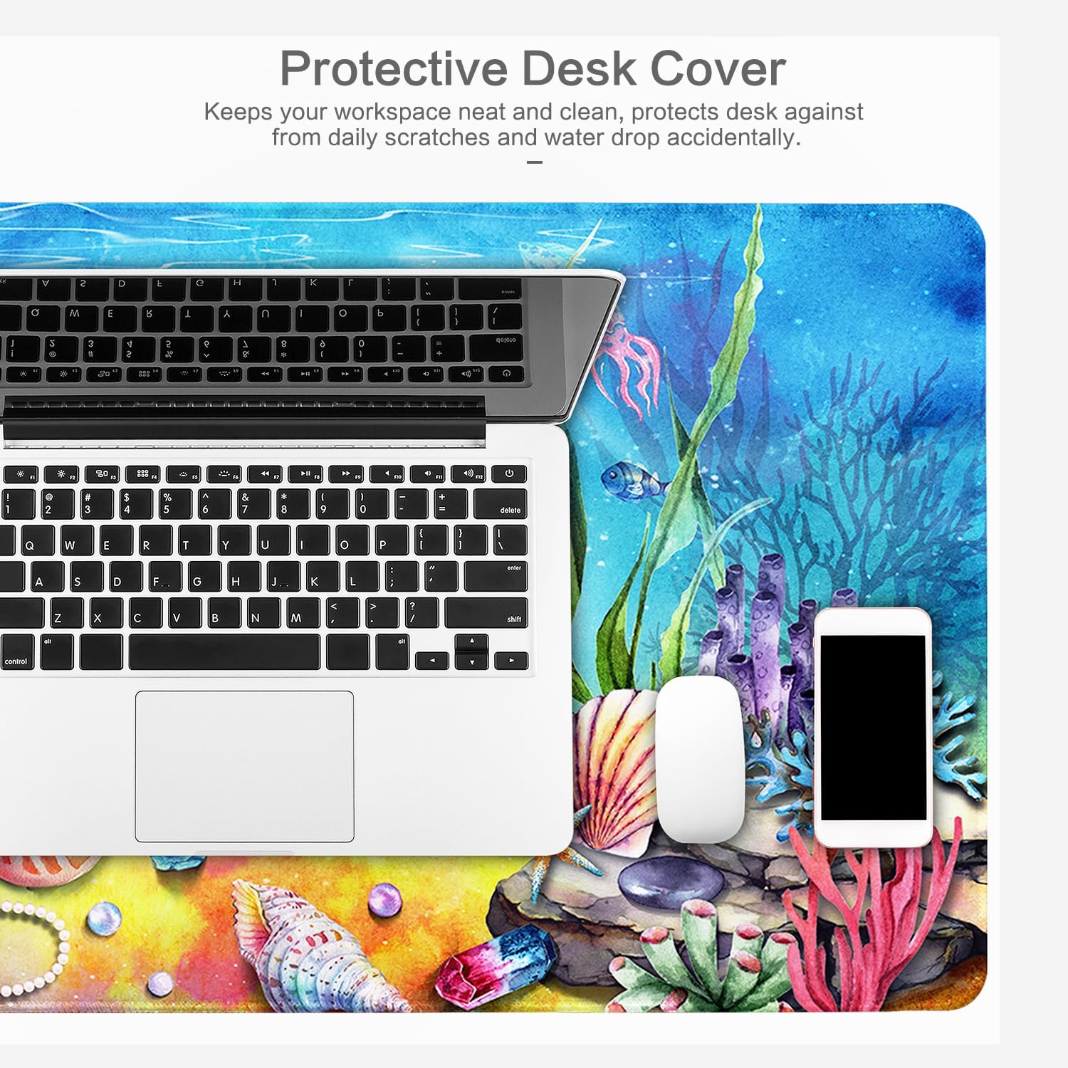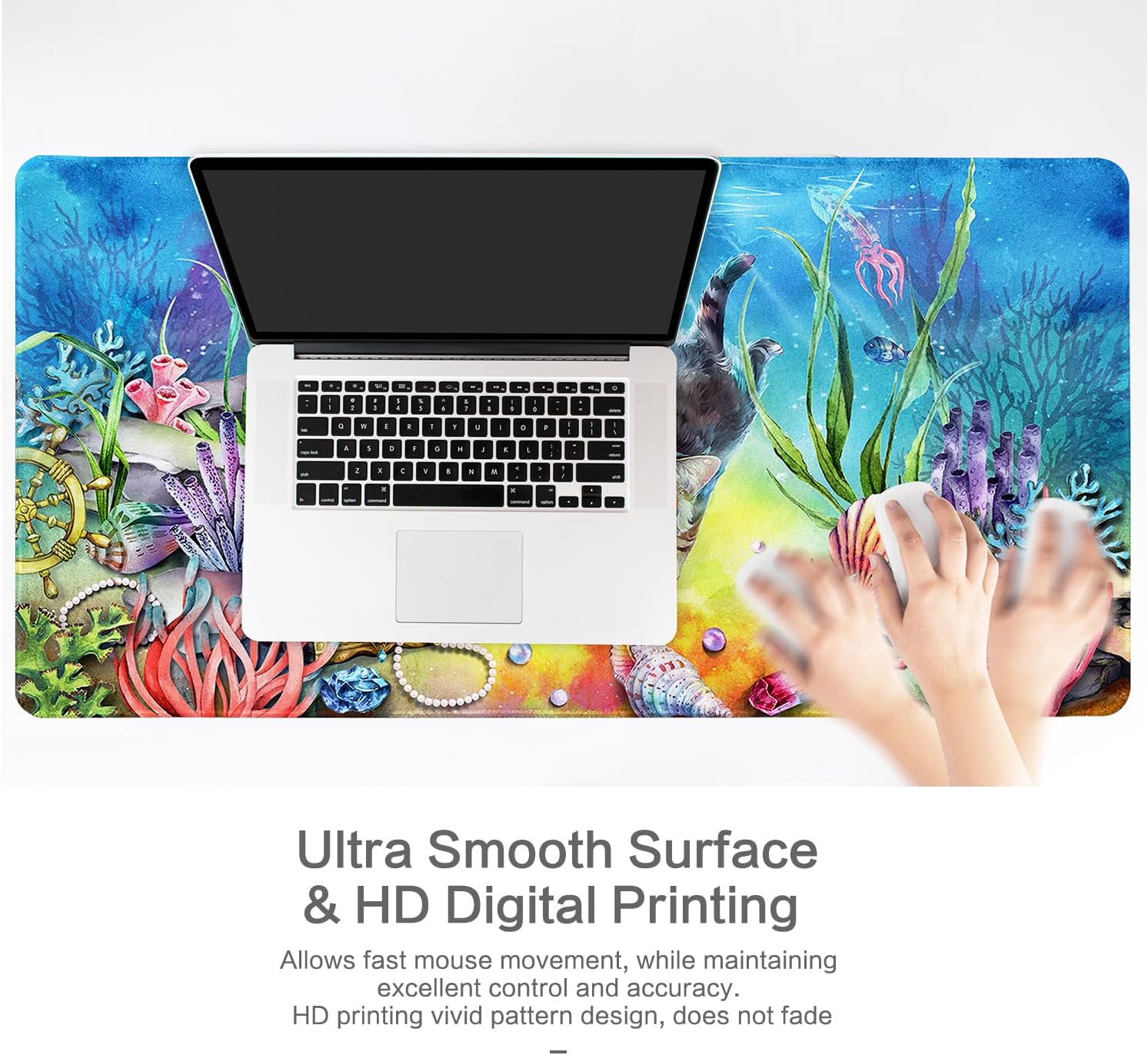 Lokigo Desk Pad Cool Cat, Big Desk Mat Cute Cat Ocean Underworld Extended Large Gaming Mouse Pad for Desk Boys Girls Non-Slip Rubber Base Stitched Edges Mouse Mat Office Home Laptop Desk Matt