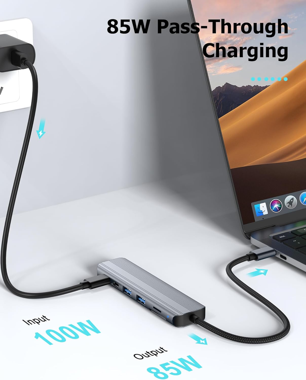 - 100W Fast Charging – A True Powered USB Hub – Keep your MacBook Pro or other USB-C laptops charged at full speed (up to 100W) while simultaneously transferring files or connecting peripherals—no power compromises.