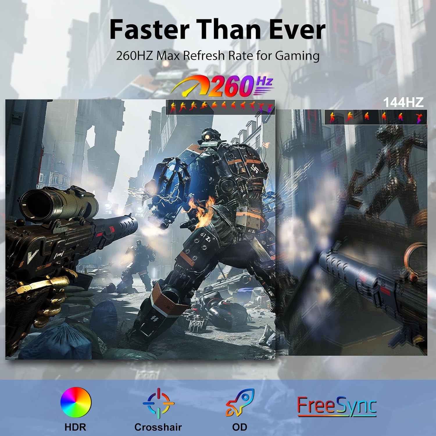 - 18" 260Hz Screen: InnoView 260HZ ultra-high refresh rate laptop monitor with OD acceleration and FreeSync gives you lightning-fast, lag-free experience. Portable screen's GamePlus enhances your gaming experience with customizable crosshairs and FPS game mode. Ultra-high performance allows you to be ahead of your competitors when playing games, and the picture is smooth without lag or ghosting when working. To achieve 240Hz, your device must be able to achieve the same refresh rate