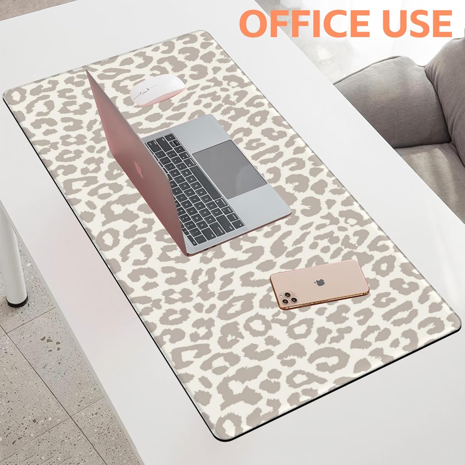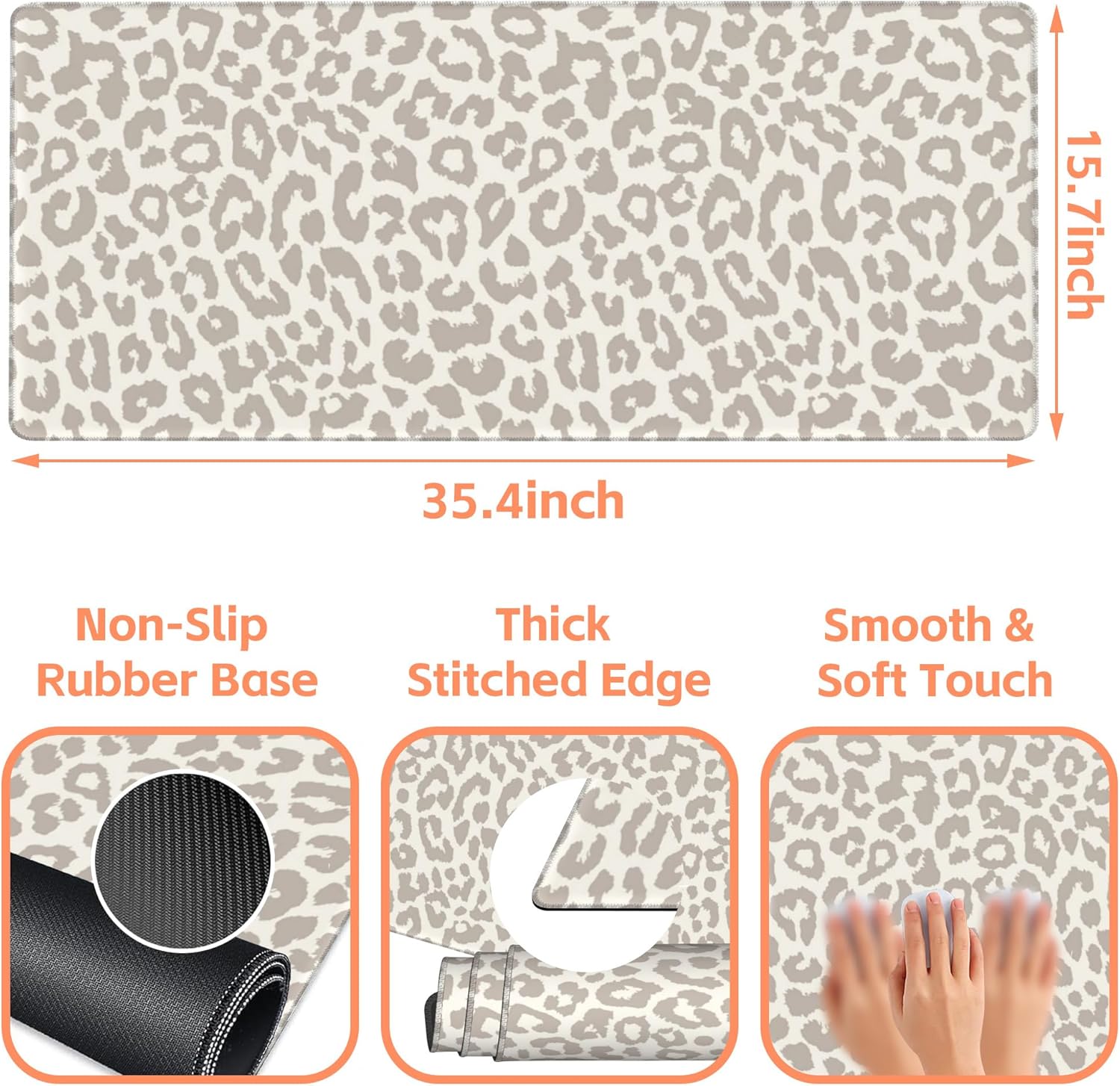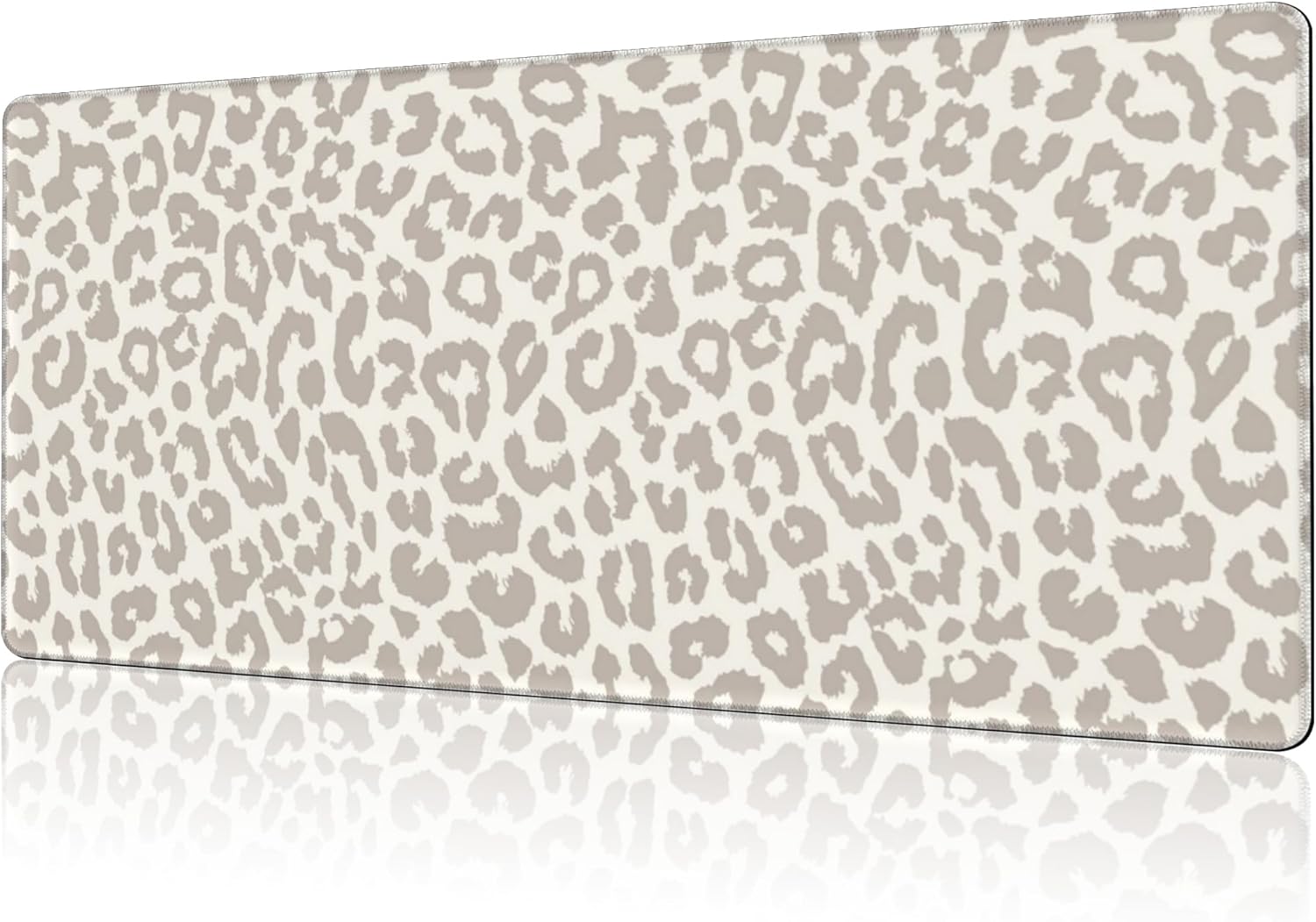 Mouse Pad Large Leopard Print Non-Slip Gaming Desk Mat with Stitched Edge Laptop Keyboard Desk Pad for Work Home Gaming (35.4 x 15.7 Inches)