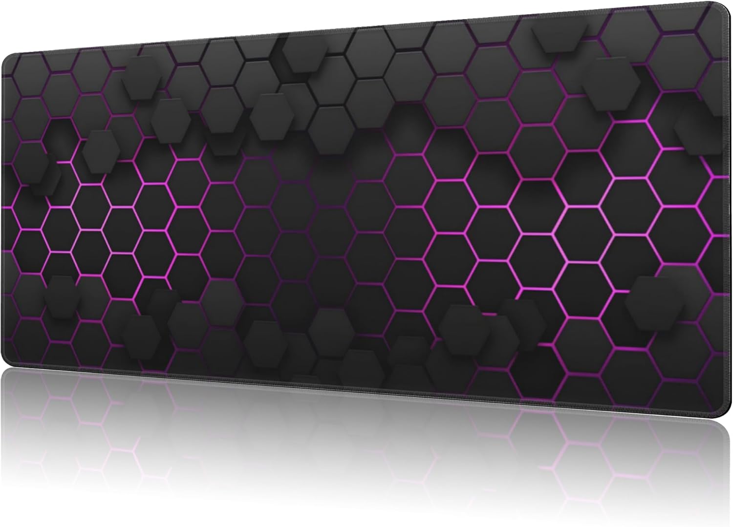 Mouse Pad Large Electric Glow Hexagonal Non-Slip Gaming Desk Mat with Stitched Edge Laptop Keyboard Desk Pad for Work Home Gaming (35.4 x 15.7 Inches)