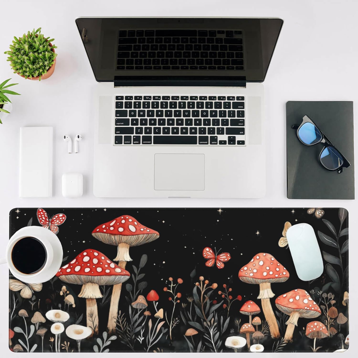 Mouse Pad Large Magical Fantasy Mushroom Non-Slip Game Desk Mat with Stitched Edge Laptop Keyboard Desk Pad for Work Home Gaming (35.4 x 15.7 Inches)