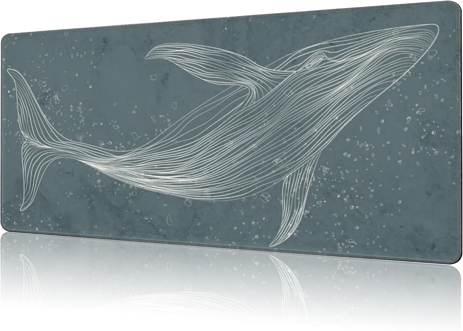 Mouse Pad Large Hand Drawn Whale Non-Slip Gaming Desk Mat with Stitched Edge Laptop Keyboard Desk Pad for Work Home Gaming (35.4 x 15.7 Inches)