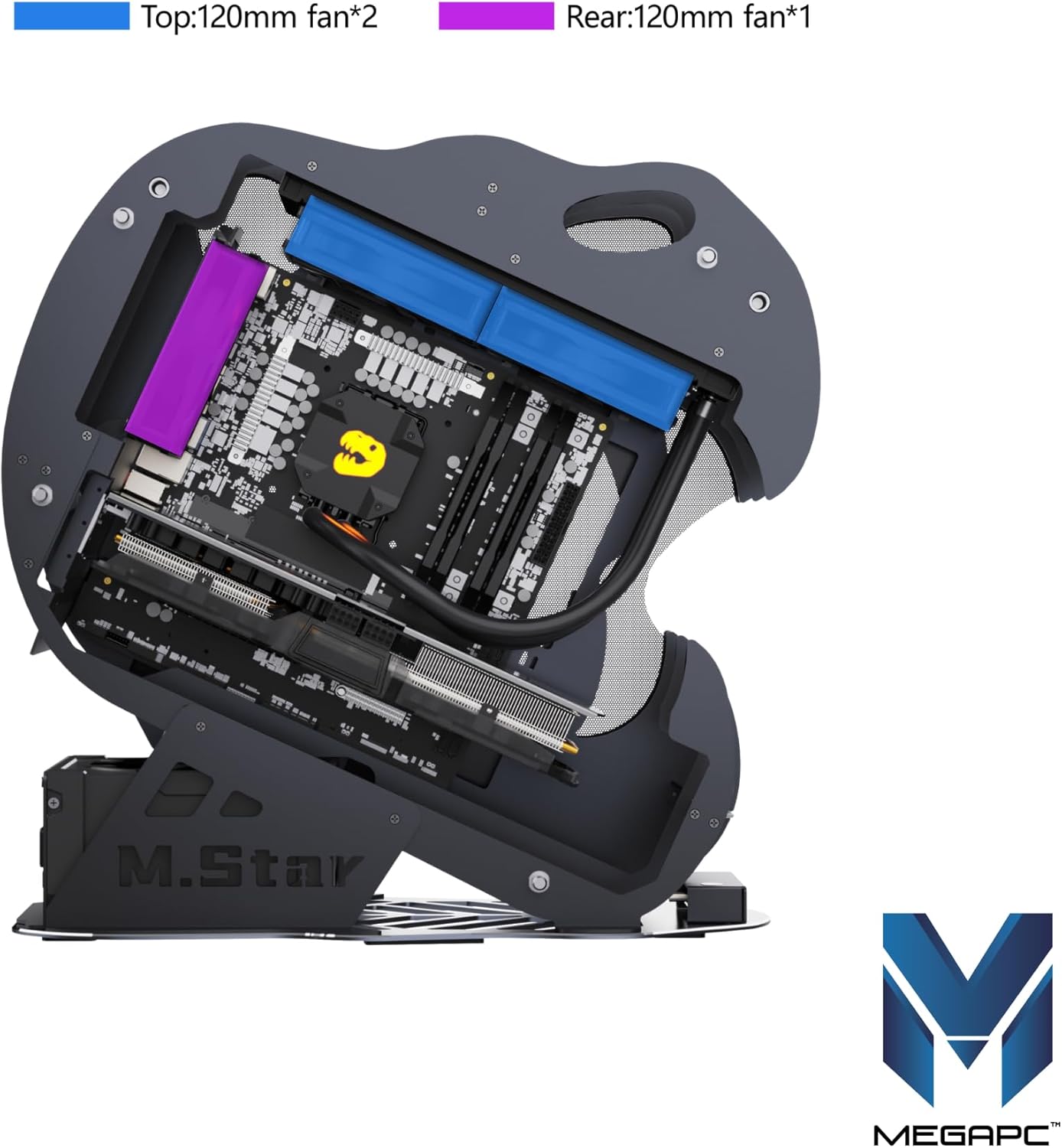 - 【Upgraded Open-Frame Design】 MegaPC M3K features an innovative open-frame design with Micro-ATX and Mini-ITX motherboard support, offering maximum airflow and optimal cooling performance ensure that you don’t sacrifice cooling for the stunning looks of a glass panel.