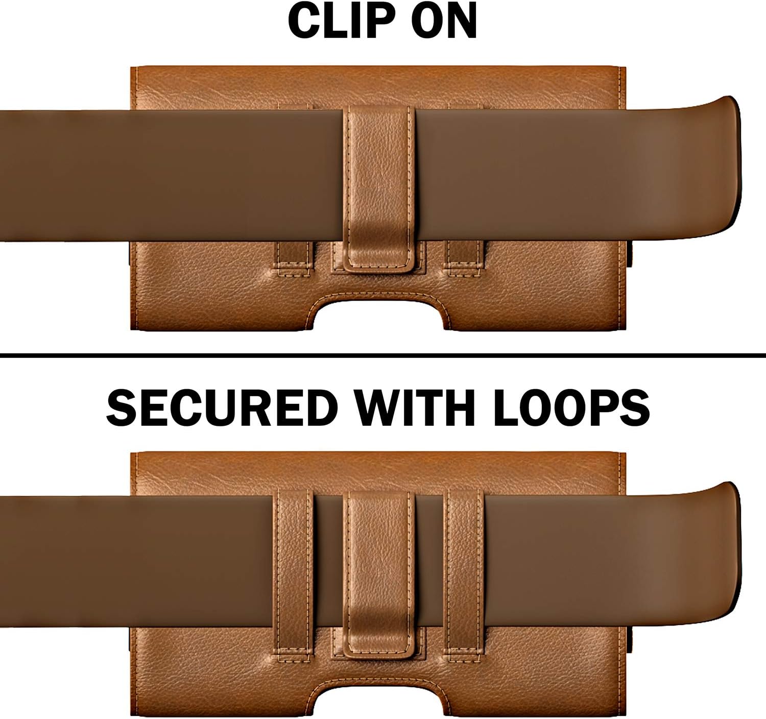 Holster for Samsung Galaxy Ultra S25 S24 S23 S22 S21 Note 20, Google Pixel 8 9 Pro XL – Extra Large Cell Phone Belt Holder Case with Clip, ID Card Pouch - Brown