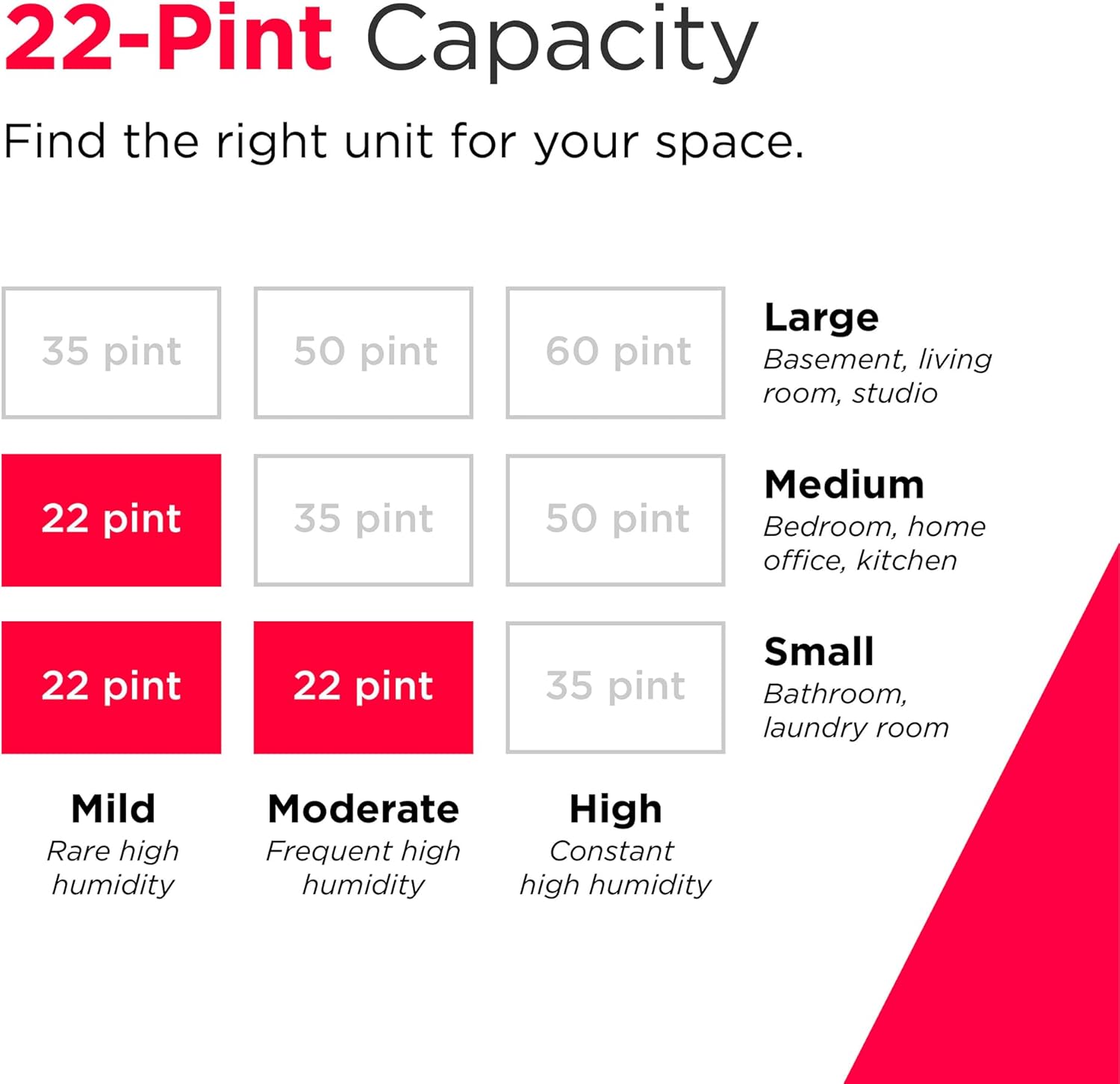 Frigidaire 22-Pint Portable Dehumidifier with Wi-Fi and Energy Star Certification for Small/Medium Rooms, Bedrooms & Bathrooms, Custom Humidity Control, Auto Shut Off, White