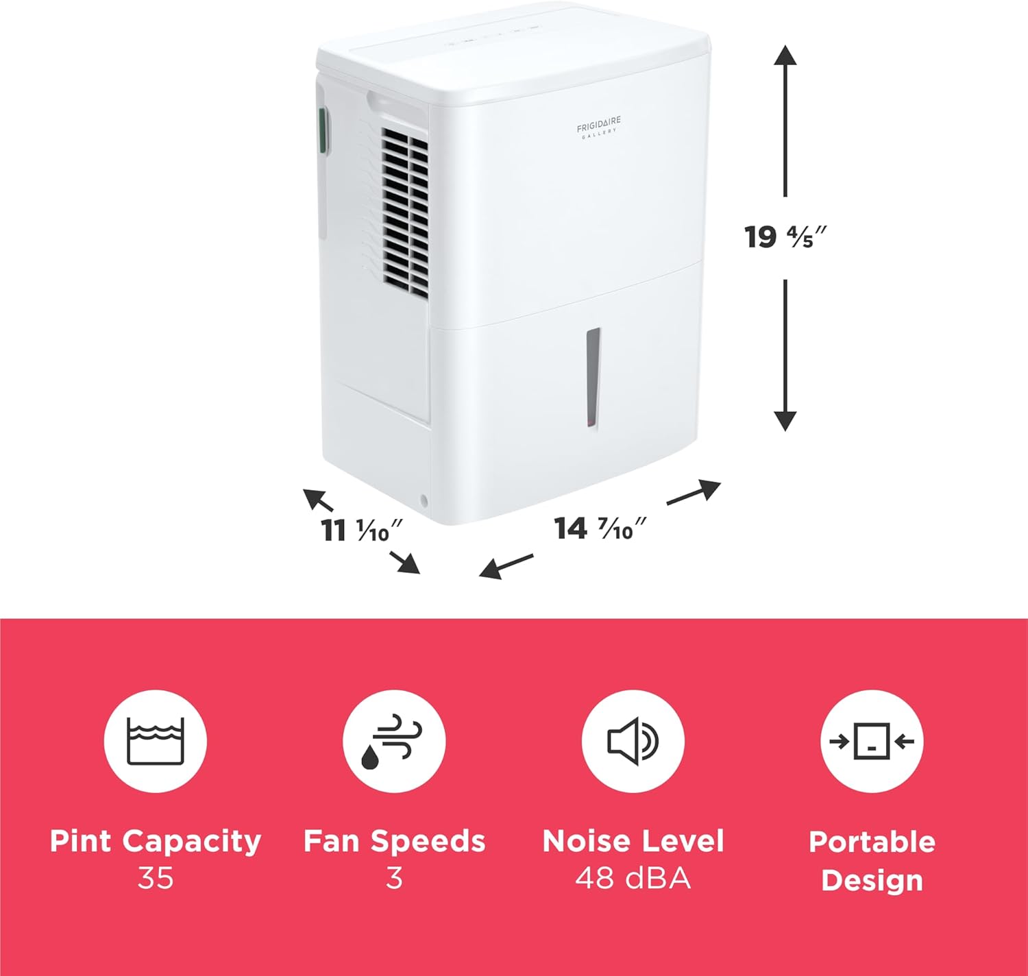 Frigidaire Gallery 2-in-1 35-Pint Dehumidifier with Wi-Fi, Energy Star Certification & Air Quality Monitoring for Small/Medium/Large Rooms & Basements, Custom Humidity Control, Auto Shut Off, White