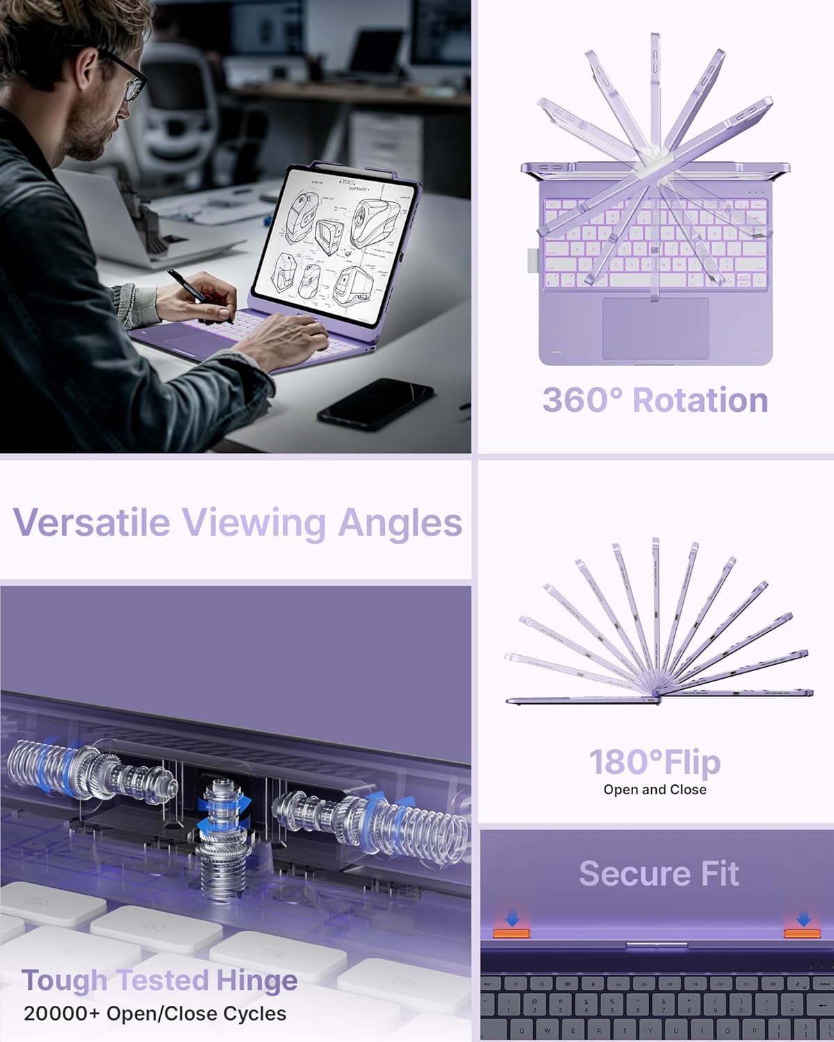 - Usage Modes: 360° hinge on this iPad Pro 13 inch keyboard offers 7 different usage modes for writing, drawing, watching videos, or browsing; Ideal for classrooms, critical tasks, or creative activities.