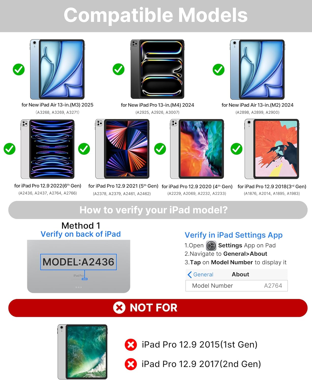 - Compatible Devices : for New iPad Air 13-inch(M3, 2025), iPad Pro 13-inch 2024, iPad Air 13-inch 2024, iPad Pro 12.9-inch 3/4/5/6th Gen for New iPad Air 13-inch(M3, 2025), iPad Pro 13-inch 2024, iPad Air 13-inch 2024, iPad Pro 12.9-inch 3/4/5/6th Gen