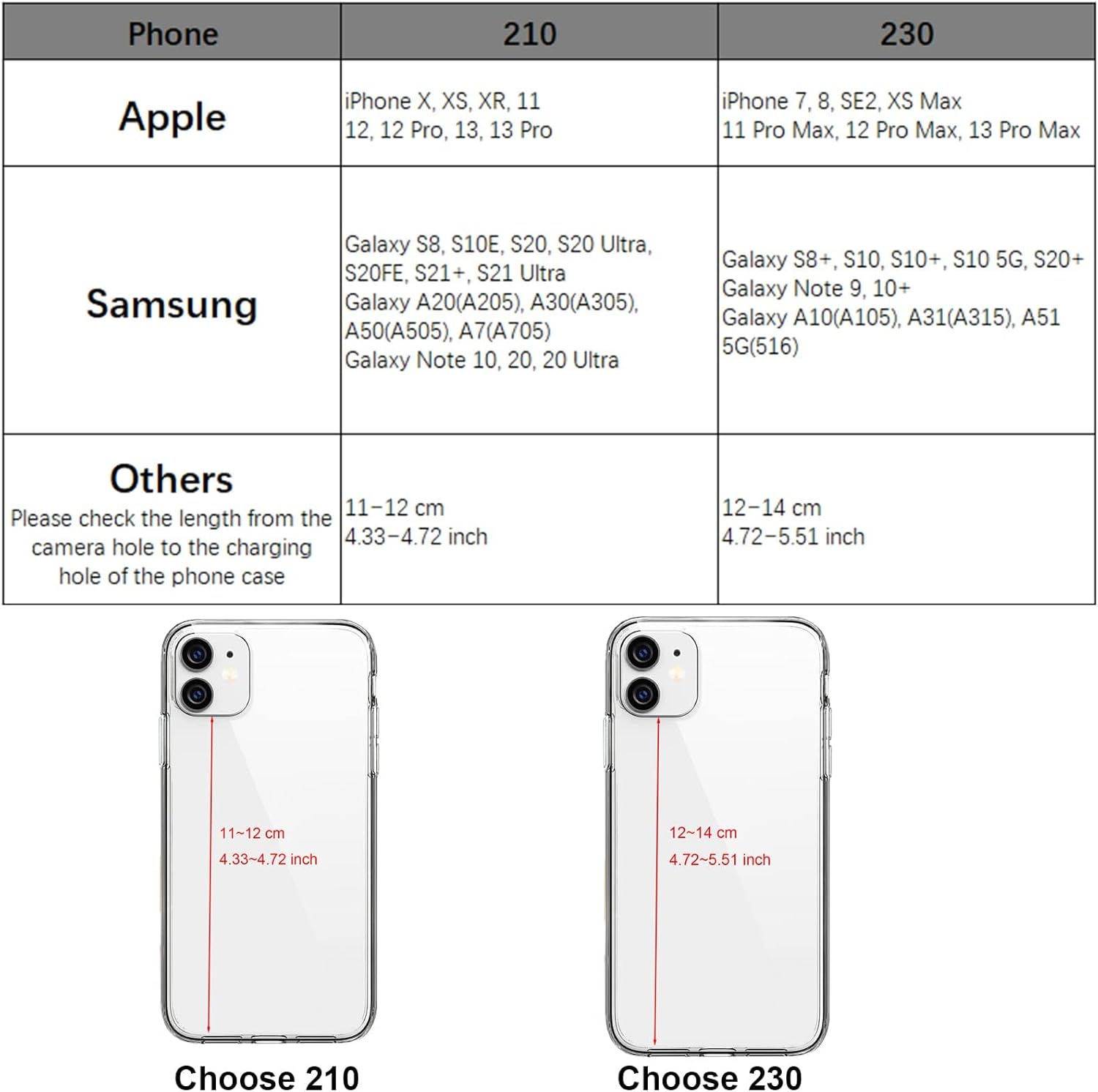 - Phone Strap Holder for Hand Compatible --TEAMOLA iphone strap holder for hand design slim & soft & durable with quality silicone. This size 230 cell phone strap holder is compatible with iPhone 16 Plus, 16 Pro Max, 15 Plus, 15 Pro Max, 14 Plus, 14 Pro Max, 7, 8, SE2, XS Max, 11 Pro Max, 12 Pro Max, 13 Pro Max; Galaxy S8+, S10, S10+, S10 5G, S20+, S23 Ultra; Galaxy A10(A105), A31(A315), A51 5G(516), A Quantum(A716); Galaxy Note 9, 10+; Other phone, please check the length of ceramic hold from charging hole of the phone case!