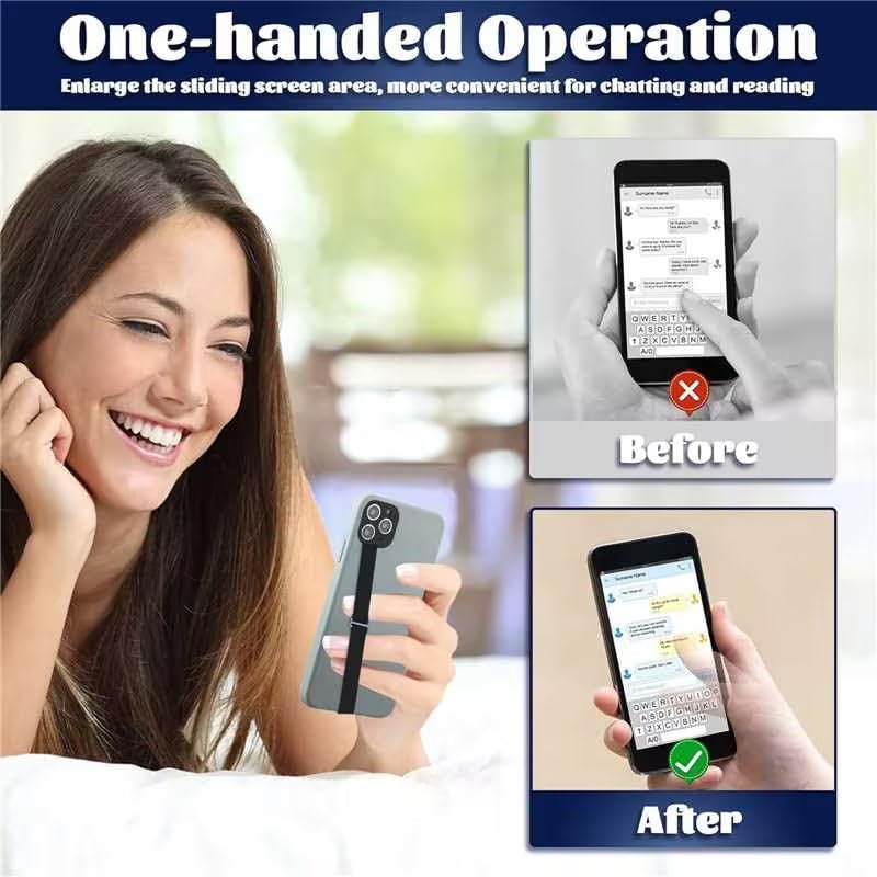 - Comfortable & Security Phone Strap-- Our stretching silicone phone strap grip with excellent elastic, soft and sturdy. Very comfortable and security when you grip your phone. The cell phone finger strap can perfect to hold your phone in any occasion so you could free up your hand to hold your coffee, bags, or whatever you need to take. Please check the compatible list to order correct size!