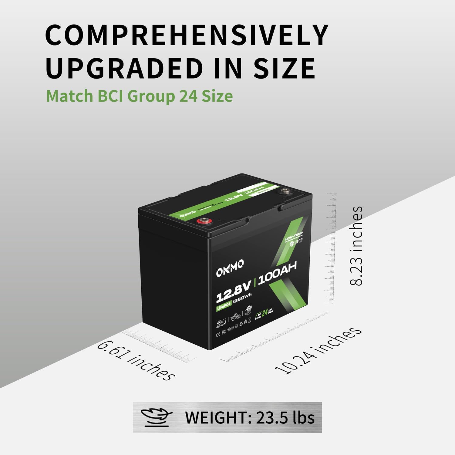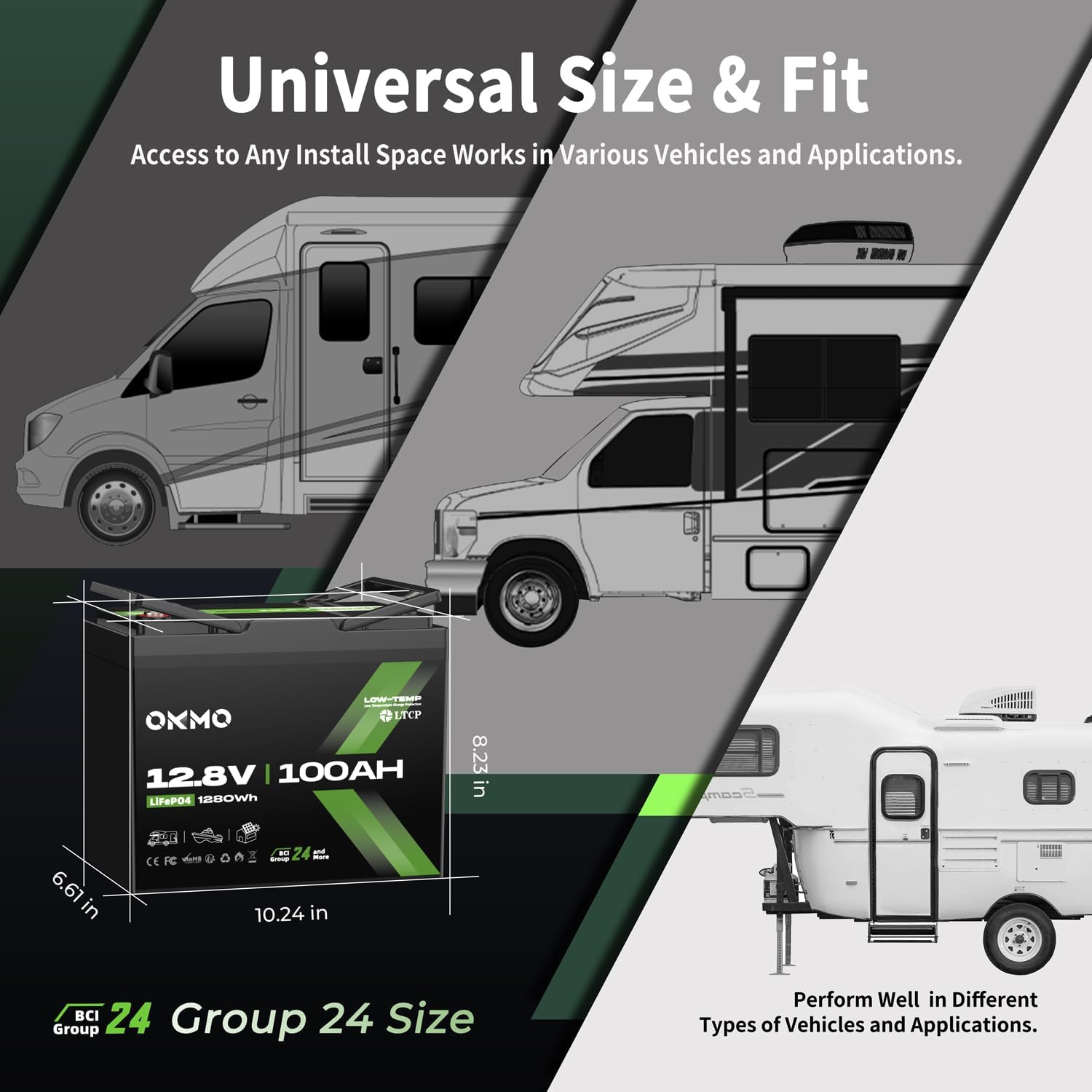 OKMO 12V 100Ah LiFePO4 Battery,Group 24 Lithium Battery 100A BMS,10 Years Lifetime 15000+ Deep Cycles,for Marine, RV, Trolling Motor, Boat, Camper, Solar Home Storage Iron Phosphate Battery