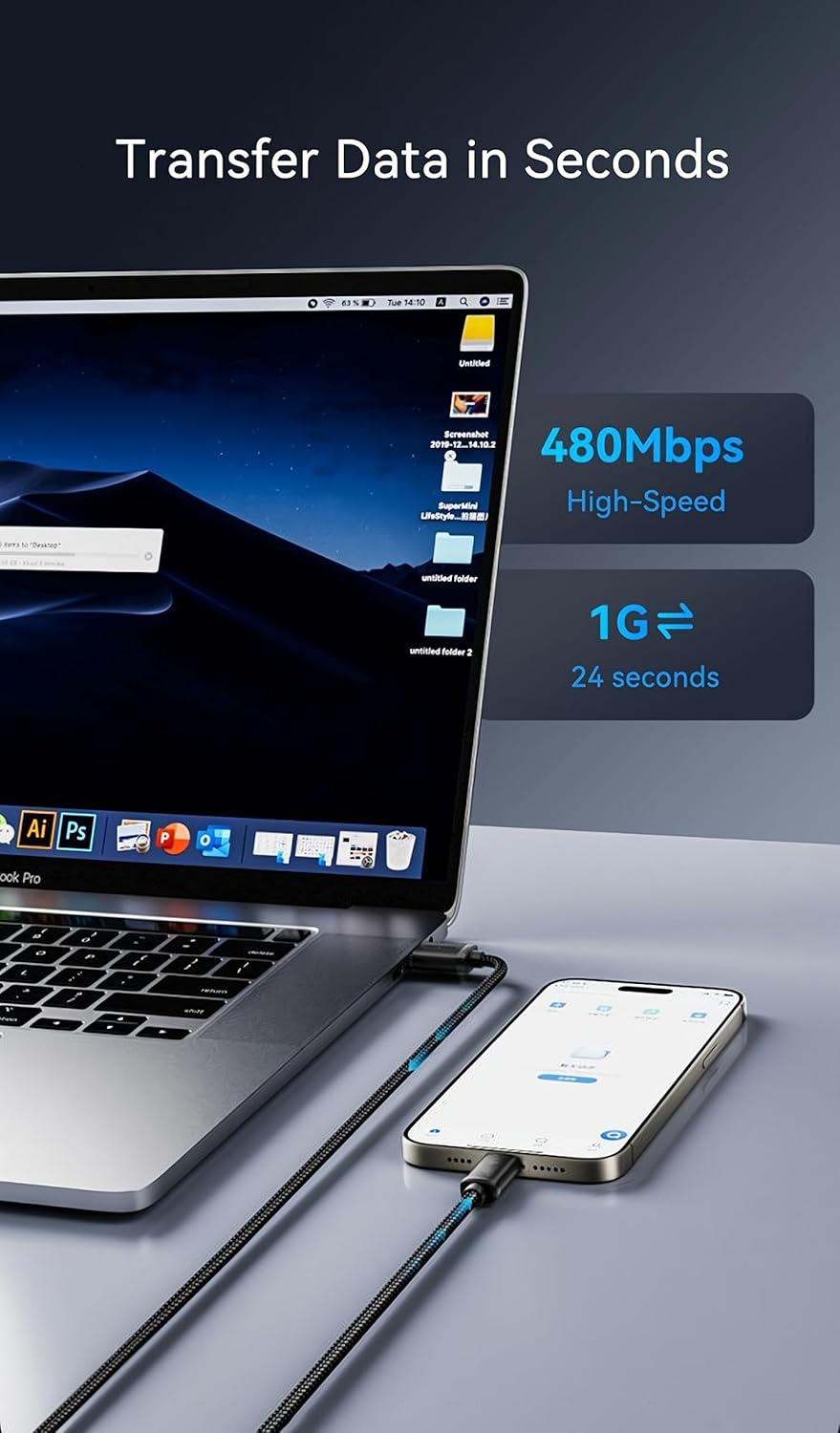 - High-speed data: transfer movies, music, or an entire photo library in seconds with 480Mbps transfer speeds.