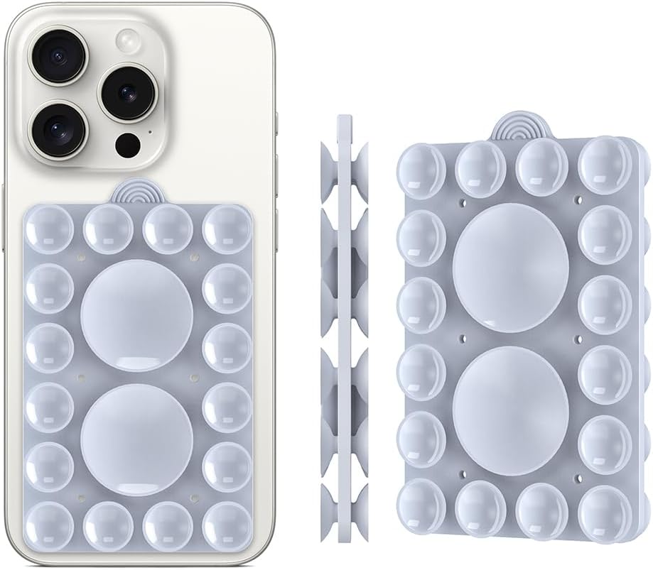 - 【Wide Range of Applications】Silicone sticky pads can be easily attached to smooth objects such as vanity mirrors, glass windows, computer screens, refrigerators, tiles, etc., and are the perfect addition to phone cases. Suction cup phone mount compatible with any mobile phone brands such as iPhone, Galaxy, Google, HTC, etc.