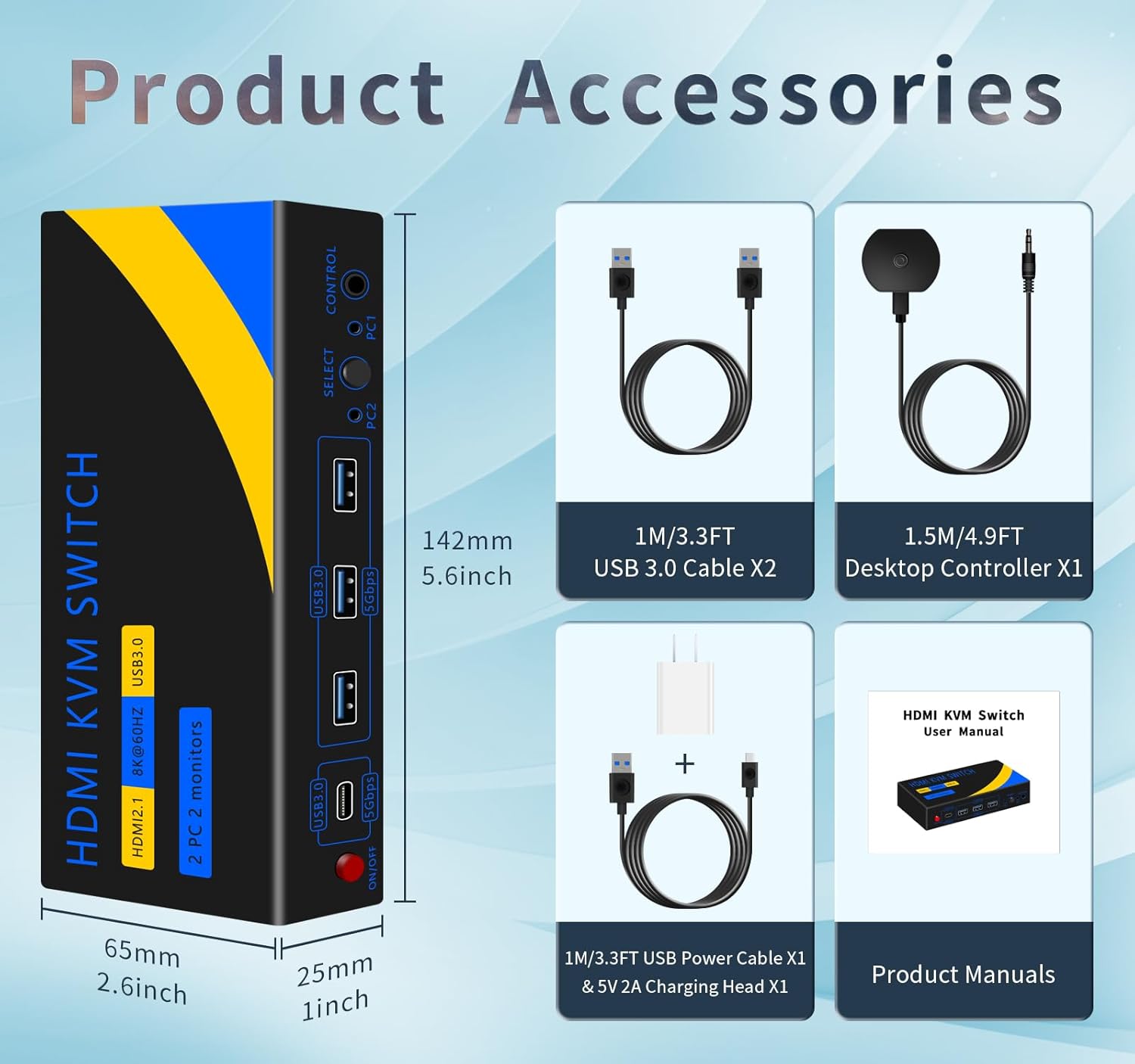 Dual Monitor Kvm Switch 2 Monitors 2 Computers HDMI 4k@60HZ,USB3.0. kvm switches 1 Monitors 2 Monitor 2 Computers,USB switcher 2 Computers Keyboard Mouse Switch (USB3.0+8KHDMI(3A1C))