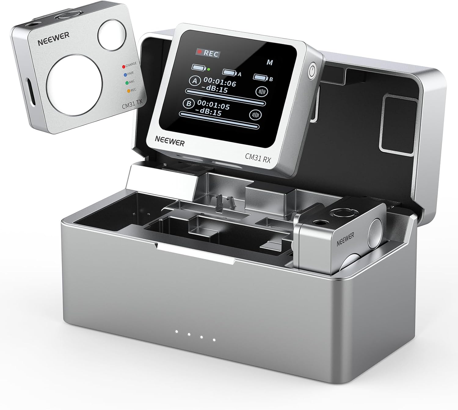 Neewer CM31 Wireless Lavalier Microphone with 8GB Storage 820ft Range 48KHz 24Bit Noise Cancelling Compatible with iPhone iPad Android PC Camera YouTube/TikTok Stream Podcast Interview