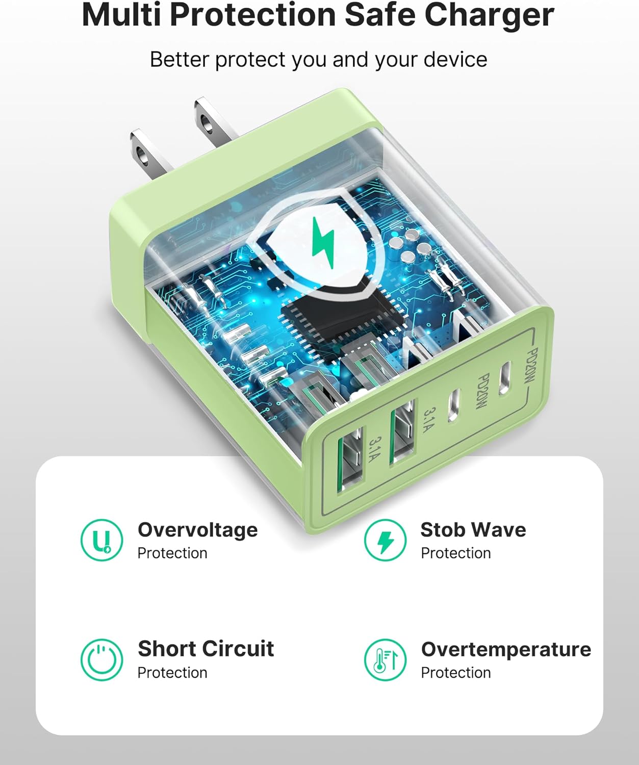 - ★★★★★Compact and Portable - It takes up no space and is comfortable to carry. Aiminu 40W 4-Port Wall Charger Green (cable not included) with 18 Months Worry-free Replacement and 24/7 Online Customer Service. If you have any questions, please feel free to contact us.
