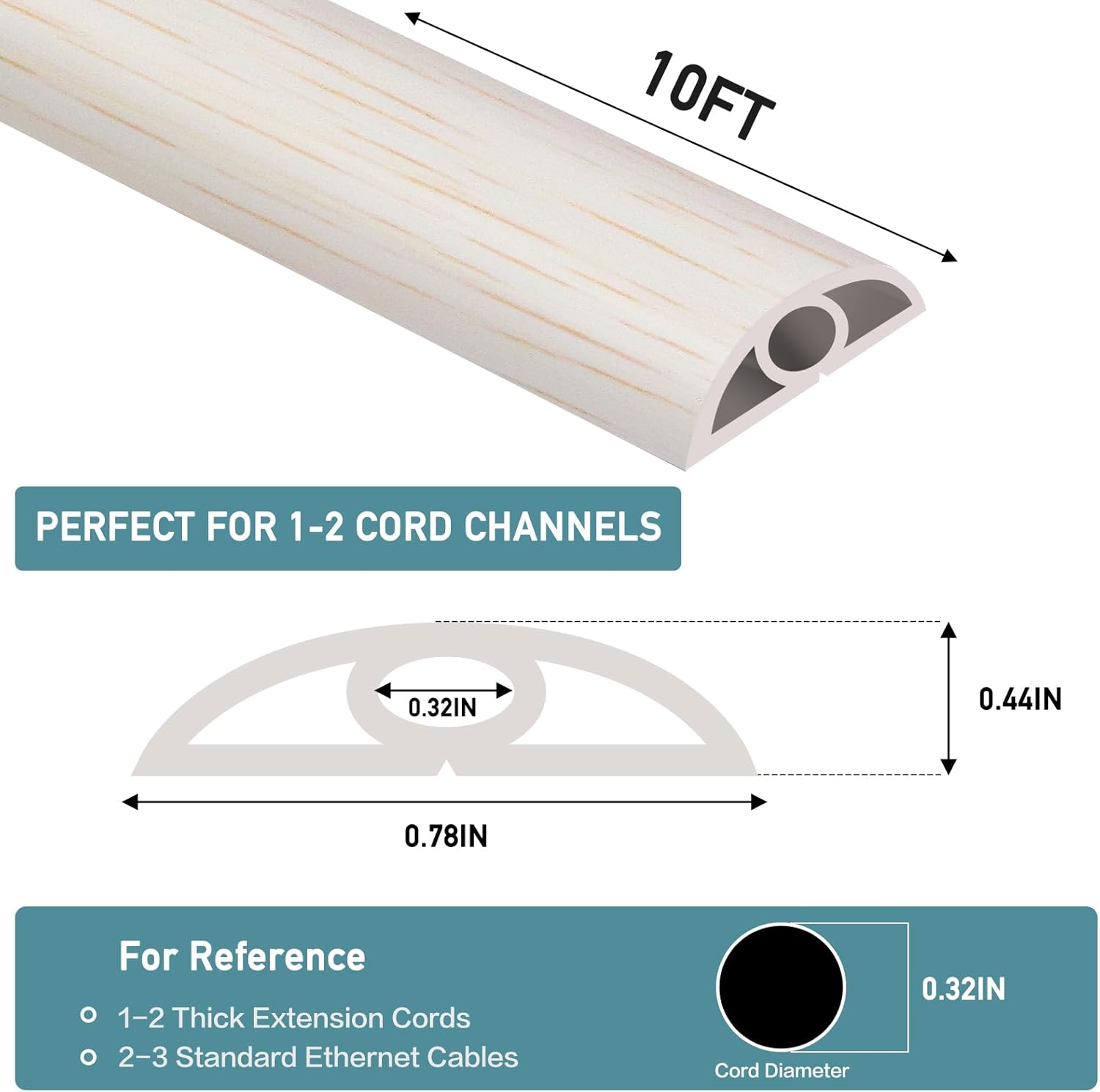 Floor Cord Cover Self Adhesive Cord Hider Floor Extension Cord Covers for Floor Power Cord Protector Cable Management Prevent Cable Trips Cable Cavity 0.32" W x 0.32" H (Beige Wood, 10Ft)