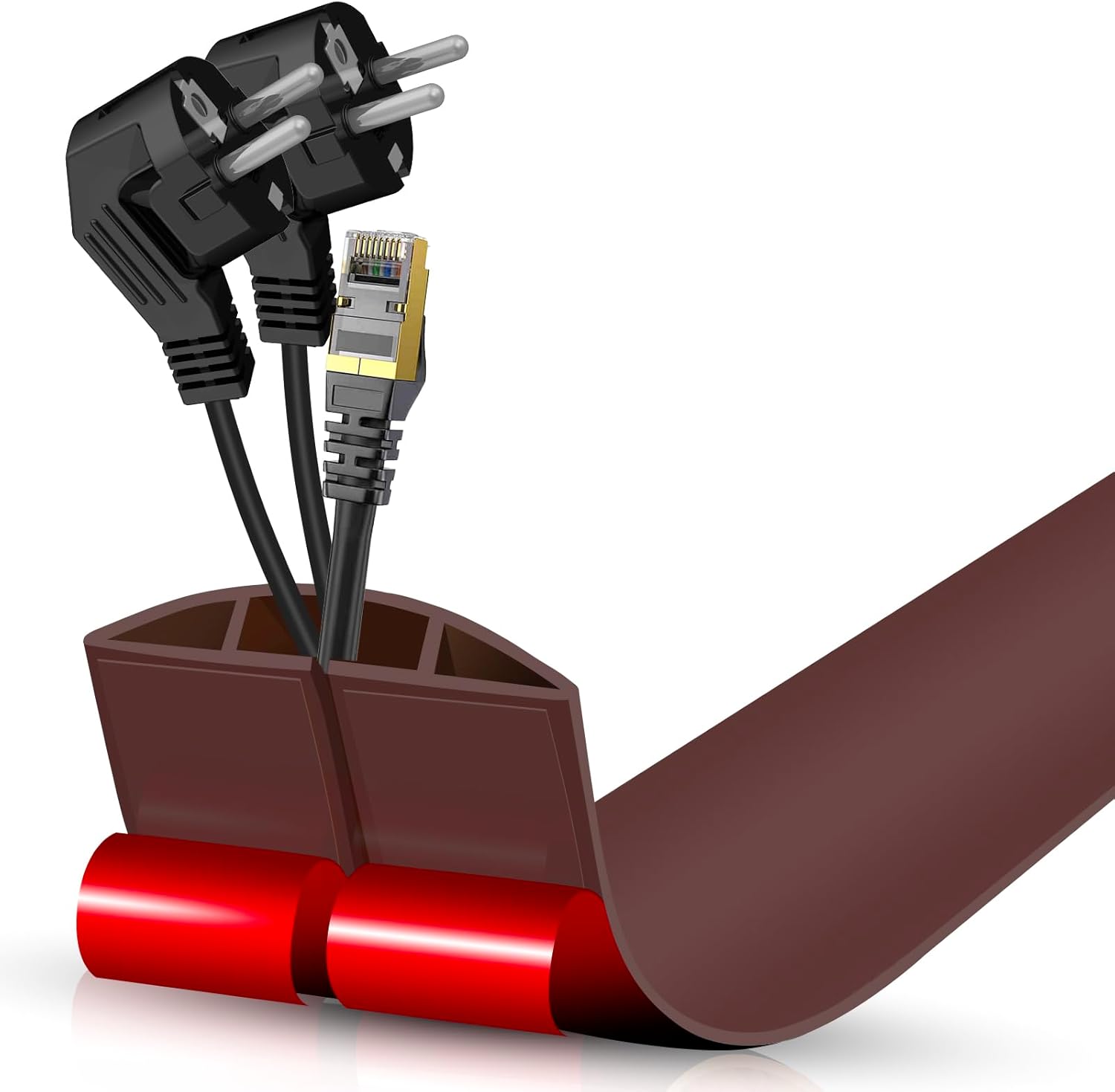 Floor Cord Cover Cavity 0.8"x0.37" Self Adhesive Cord Hider, 3.3FT Low Profile Cable Management, Extension Strip Protector for Wires, Prevent Cable Trips for Offices, Gyms, Exhibitions (Coffee)