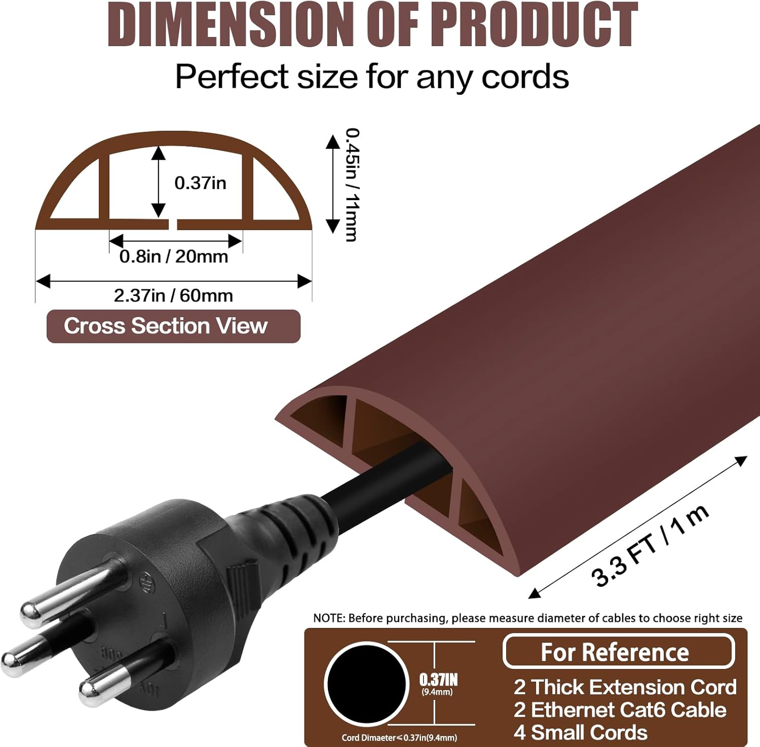 - 【Floor Cord Covers Dimensions】 2.36" (W) x 0.4" (H) x 3.3ft Length - Inner Channel = 0.8" (W) x 0.37" (H). Floor cable cover profiles are available to protect cables up to 2 x 0.31" and 1 x 0.18" in diamete.