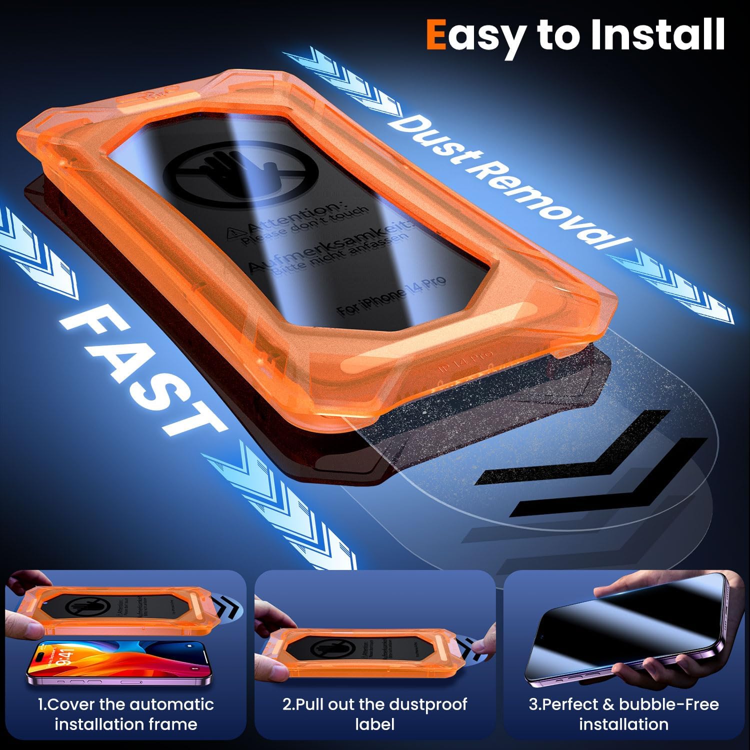 - 【Professional Customer Support】This product includes 2 Pack iPhone 14 Pro screen protector, a dust-free installation tool, and a cleaning kit. If you have any questions during use, please contact us. Rest assured, we will provide you with a satisfactory.