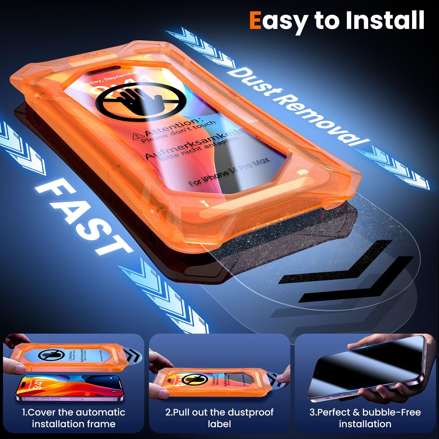 - 【Professional Customer Support】This product includes 2 Pack iPhone 14 Pro Max screen protector, a dust-free installation tool, and a cleaning kit. If you have any questions during use, please contact us. Rest assured, we will provide you with a satisfactory.