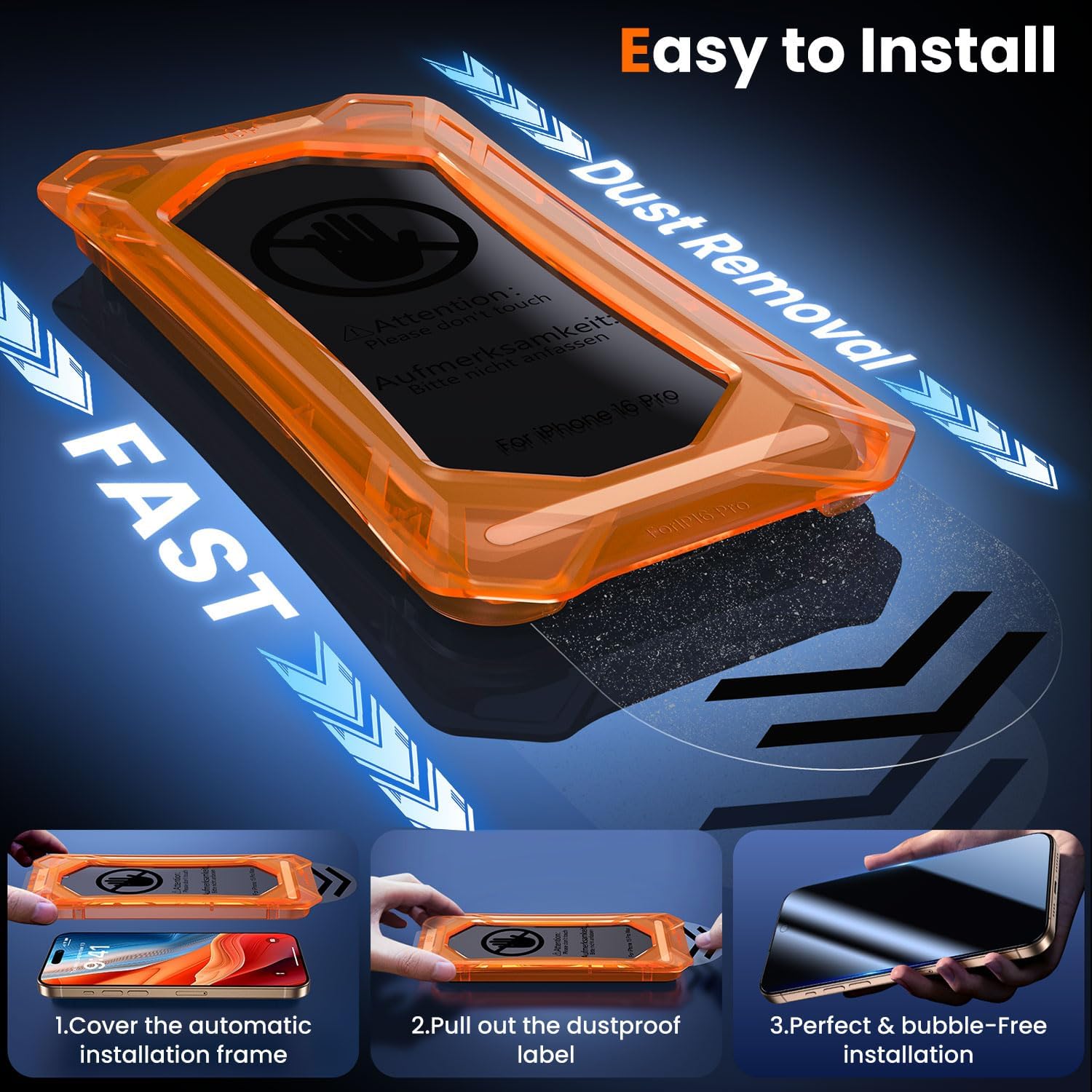- 【Professional Customer Support】This product includes 2 Pack iPhone 16 Pro screen protector, a dust-free installation tool, and a cleaning kit. If you have any questions during use, please contact us. Rest assured, we will provide you with a satisfactory.