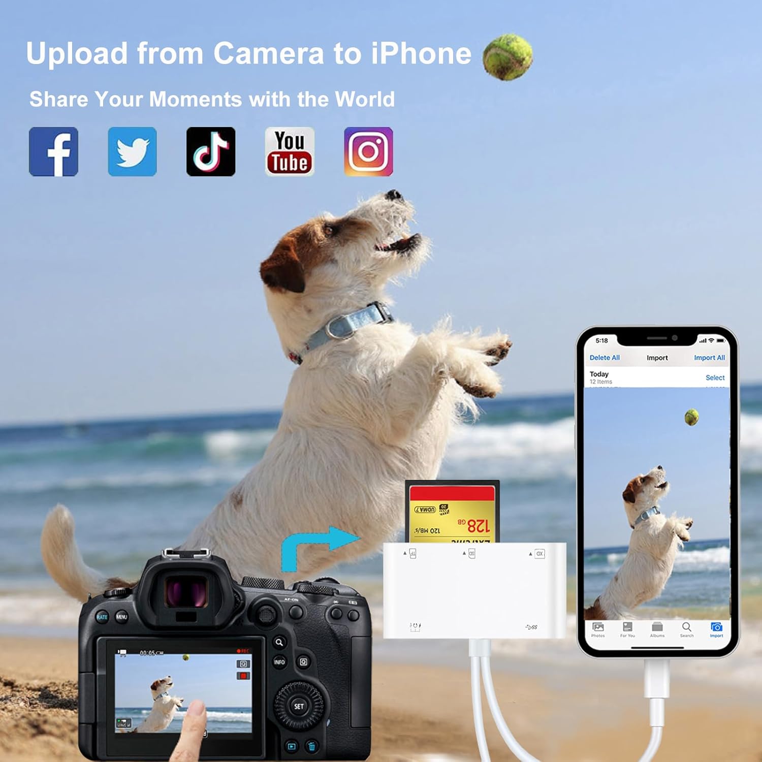 - PLUG & PLAY: No need for WIFI, network or drivers, super easy to use. The sd card reader for iphone build-in three different connectors(USB/USB-C/Lightening), compatible with Mac OS, iOS, Android, Windows, allows you to connect almost all mobile phones, tablets, laptops and computers