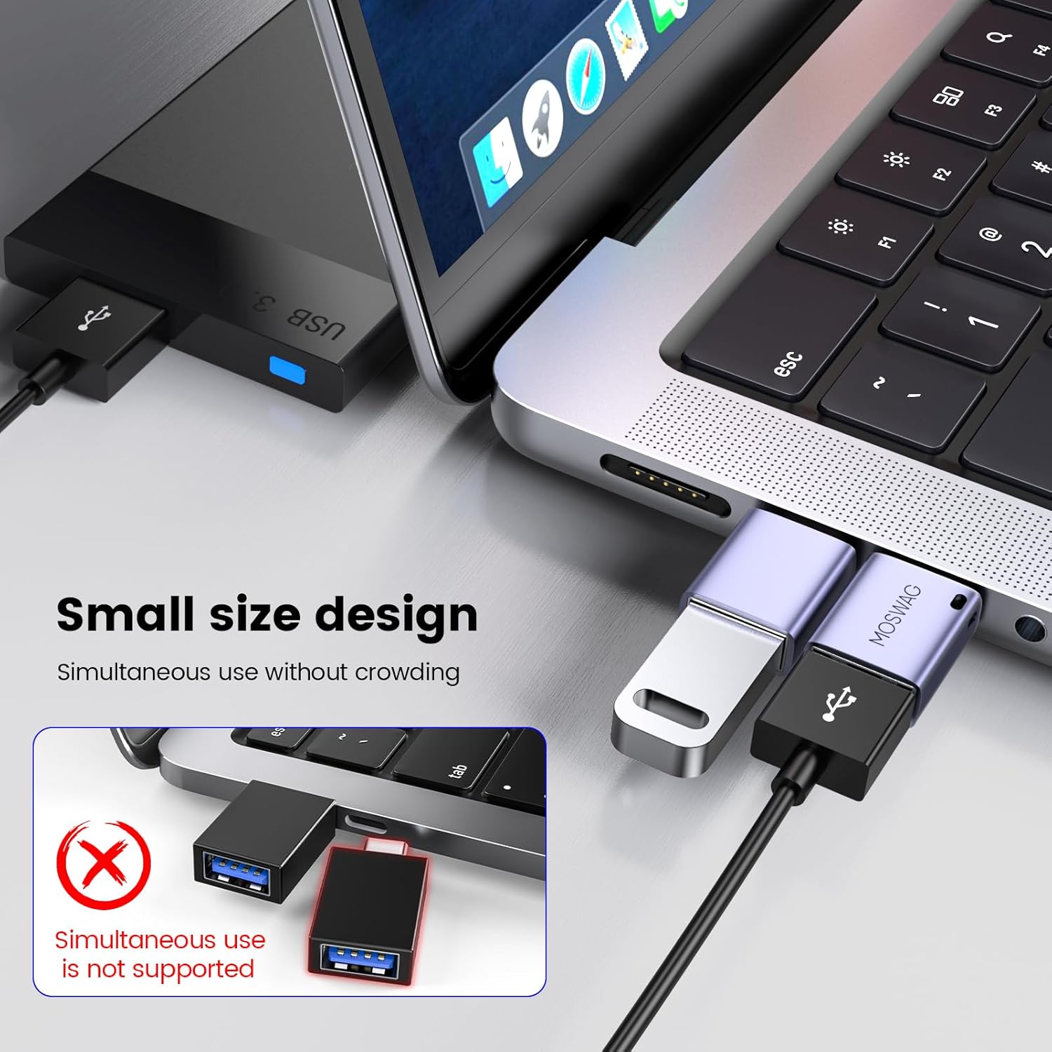 MOSWAG USB C to USB Adapter 4 Pack, USBC Male to USB 3.0 Female MacBook Pro Air Adapter, Type C Thunderbolt 3 OTG Converter for MacBook,Chromebook, Surface,Samsung Galaxy S24 S23, iPhone 15 16