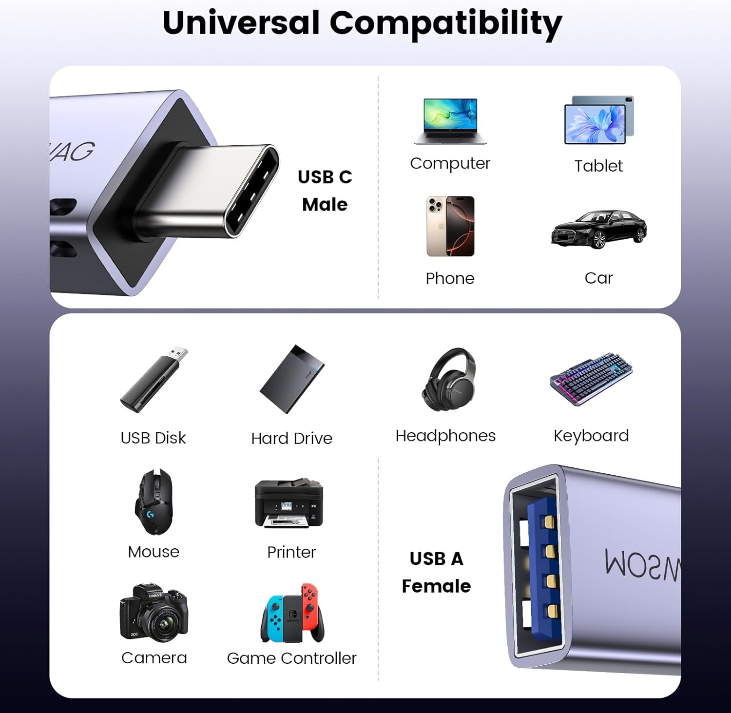 - [Compatibility] This USB C to USB 3.0 adapter is used for iPhone 15/16 Series and Android Phone, MacBook Pro after 2016 and MacBook Air after 2018 and most of the laptops, tablets and smartphones with a USB Type C port.