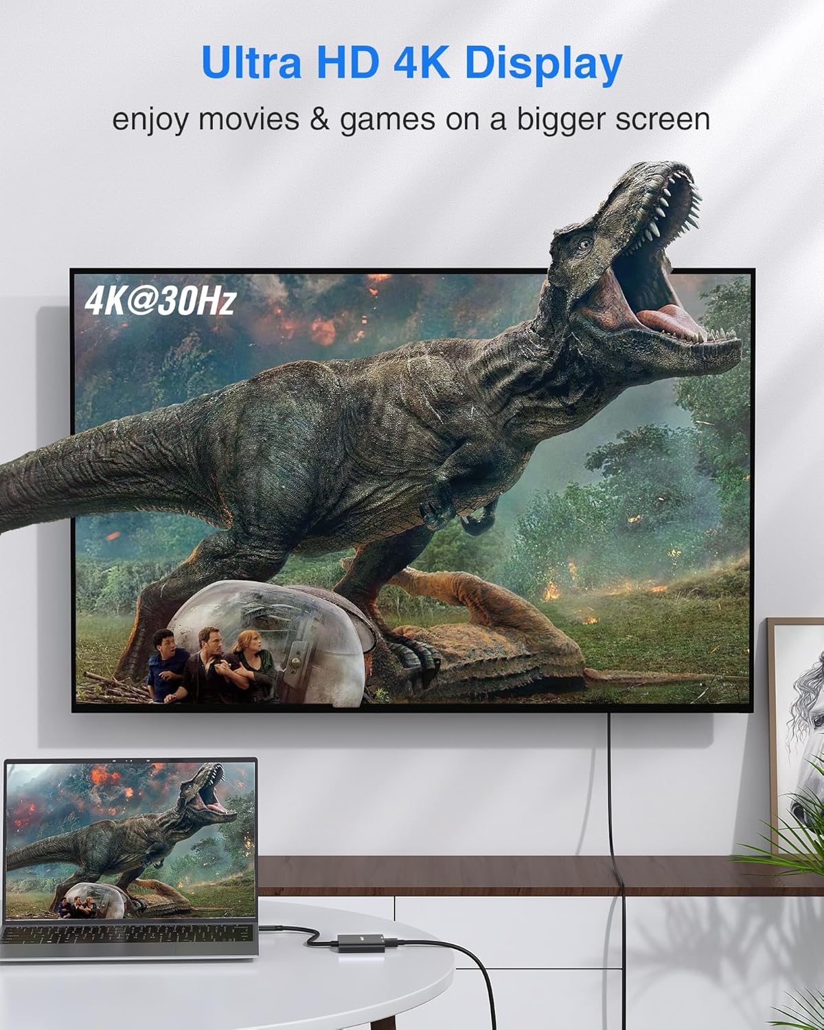- Ualtra HD 4K video output: The HDMI adapter for macbook air can mirror or extend the screen of your laptop/phone/tablet to 4K Ultra HD or Full HD 1080p video directly to HDTVs, monitors, projectors etc., provides vibrant, clear, no wobbling of video and image, maximum resolution of 4K@30Hz. Help you enjoy nice pictures on movies and work. Lightweight, plug and play, no driver/application installation required
