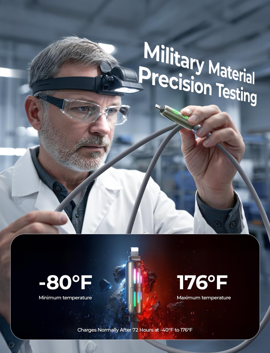 - [So Strong Heavy-Duty Thickened Silicone] The heavy-duty USB-C cable boasts an impressive 50,000+ bend lifespan! Made from food-grade, skin-friendly silicone with a baby-soft touch, it’s tangle-free, waterproof, and easy to clean. The sturdy zinc alloy housing is 1000 times stronger than plastic, ensuring consistent and reliable charging every time. The stylish leather strap keeps storage neat and organized, offering ultimate convenience.