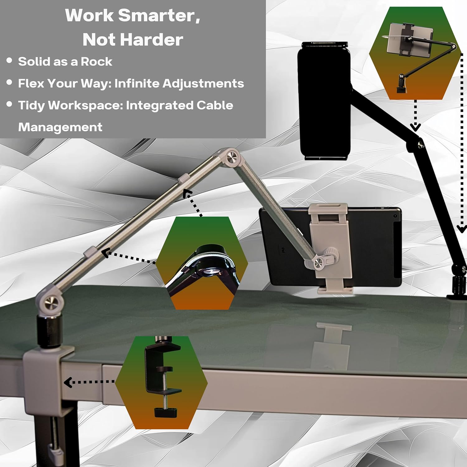 Portable Monitor Stand 16 Inch - Heavy Duty Aluminum Adjustable Monitor Mount with Articulating Arm, 360° Rotation, Cable Management - Professional Desk Setup for Tablets, Phones 4.7-16"