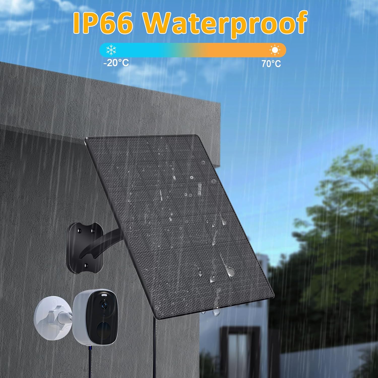 - 【High-Efficiency Solar Panel】Made with premium monocrystalline silicon, this 10W solar panel achieves higher conversion efficiency than standard panels. USB-C Solar panel charger captures more sunlight and delivers stable power throughout the day, ensuring your 5V camera stays continuously charged without manual recharging.