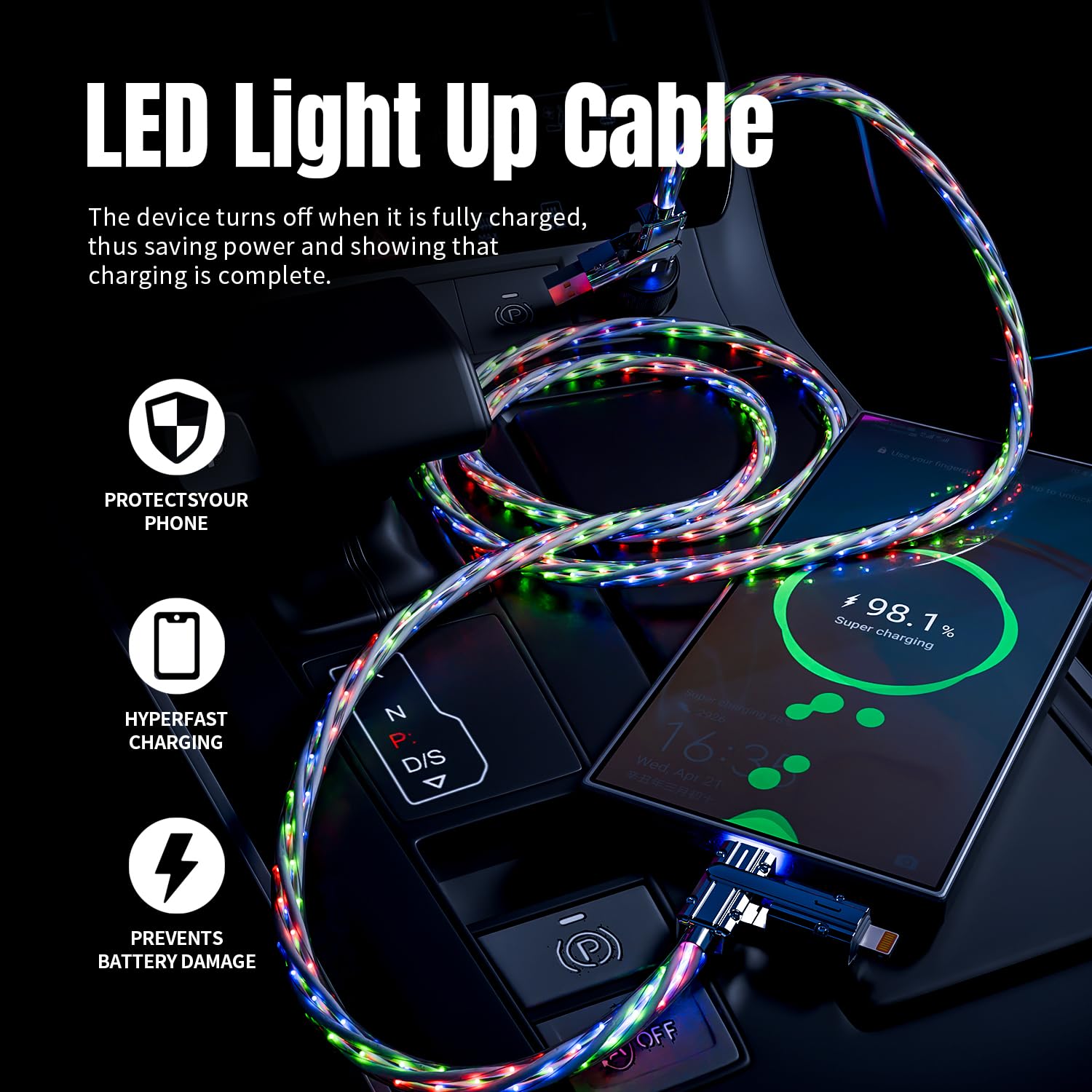 - [Light up Charging Cable]-Innovative light up iphone charger cord makes charging more vivid. Especially in the dark, the light up charging cable can easily decorate your room, car, cool and unique, and also quickly find your device.