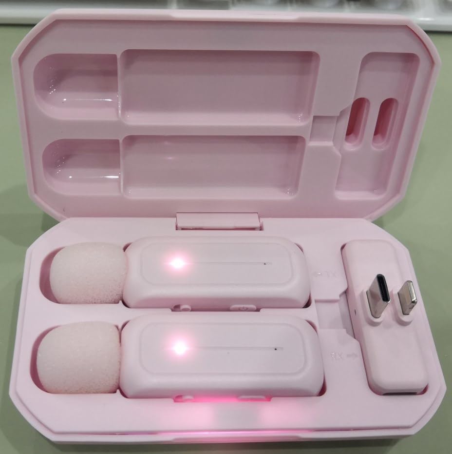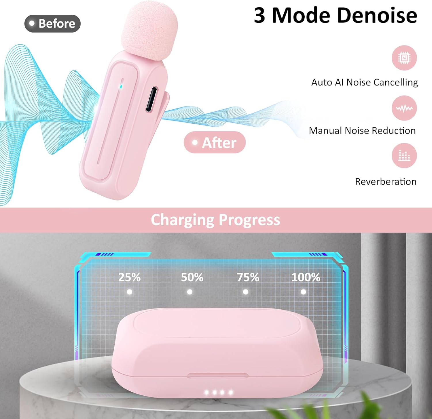 2 Pack Wireless Lavalier Microphone for iPhone iPad Android with Charging Case - 7H Clip on Lapel Microphone Wireless for Video Recording Vlogging, YouTube, Interview, 3 Mode Denoise (Pink)