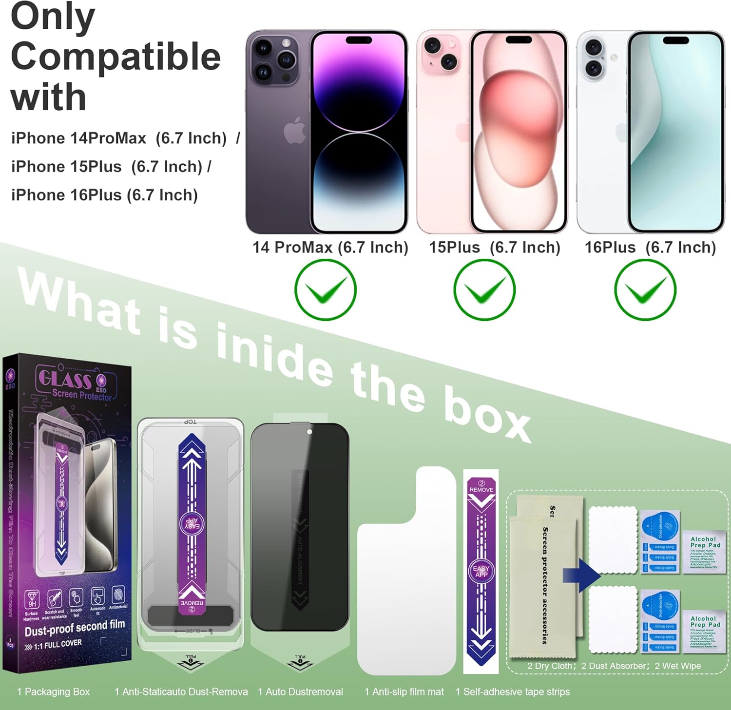 - Screen Protector Compatible:Designed specifically for iphone 14 pro max and iphone 15 plus and iphone 16 plus, our screen protector guarantees 100% touch accuracy. Please note, it is not compatible with other iPhone models
