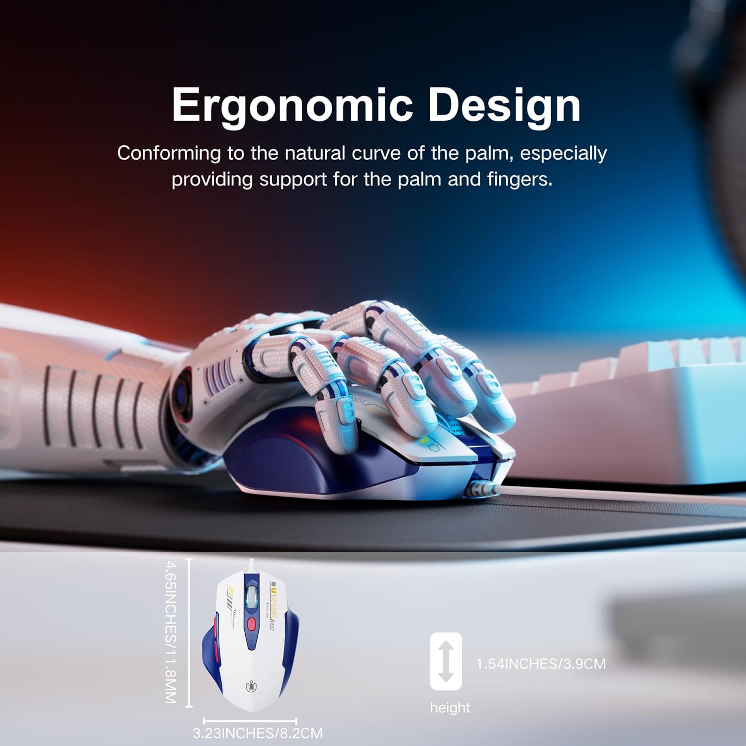 - Ergonomic Design: Our wired mouse is designed with ergonomics in mind, reducing finger pressure and fatigue. It fits comfortably in your hand, with a natural curve for prolonged use without discomfort. Whether you're working on intensive tasks or gaming with precision, this mouse offers an outstanding experience
